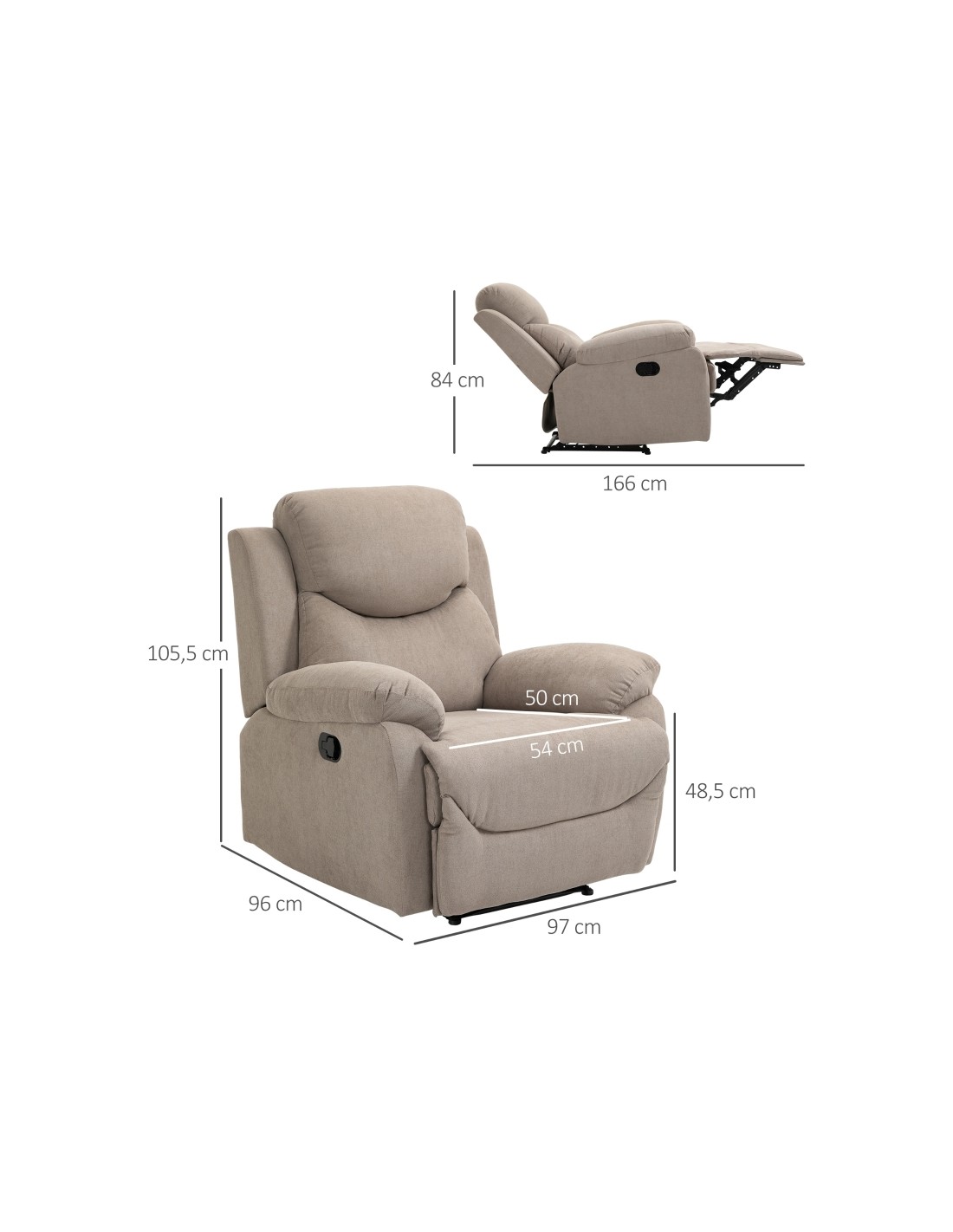 • Med liggefunktion (dybde: 166 cm)