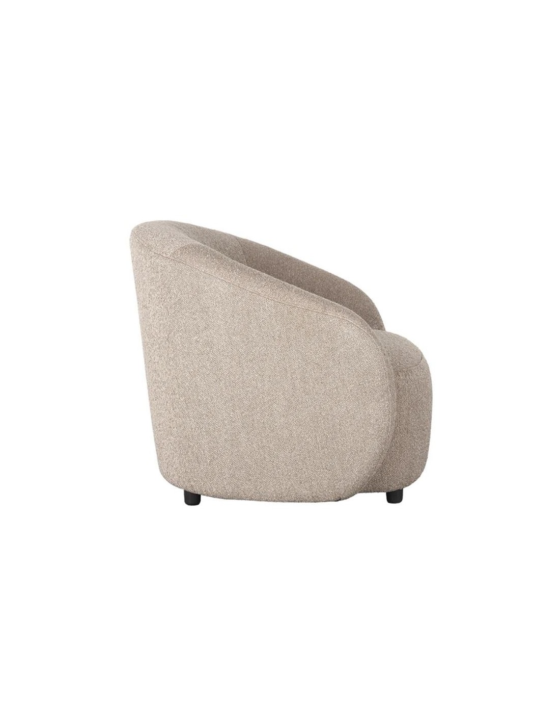 Lænestol fremstillet i et design af bouclé polyester. En komfortabel lænestol der vil passe ind i både den moderne, såvel som i den klassiske indretning. Stolen måler 79 cm over ryggen og 82 cm i bredden.