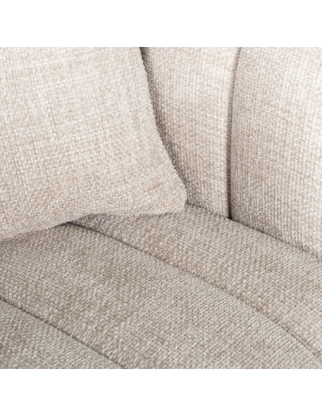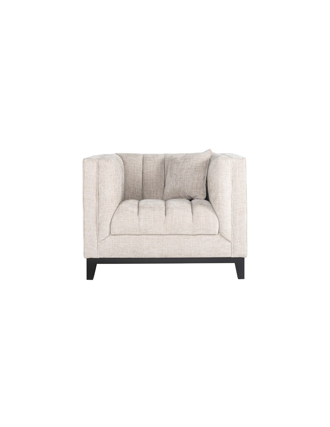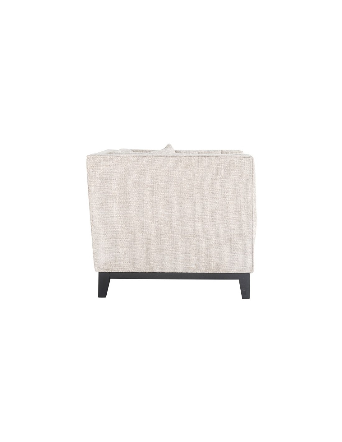 Lænestol i et design fra hollandske Richmond Interiors, udført i naturfarvet polyester og med ben i sortlakeret træ. Lænestolen måler 77 cm i højden over ryggen og 104 x 91 cm i bredde og dybde.