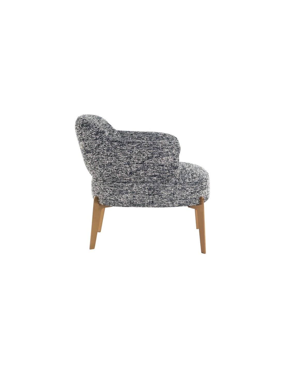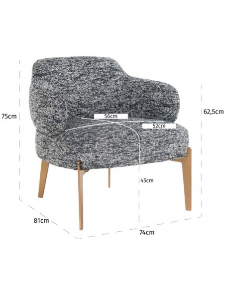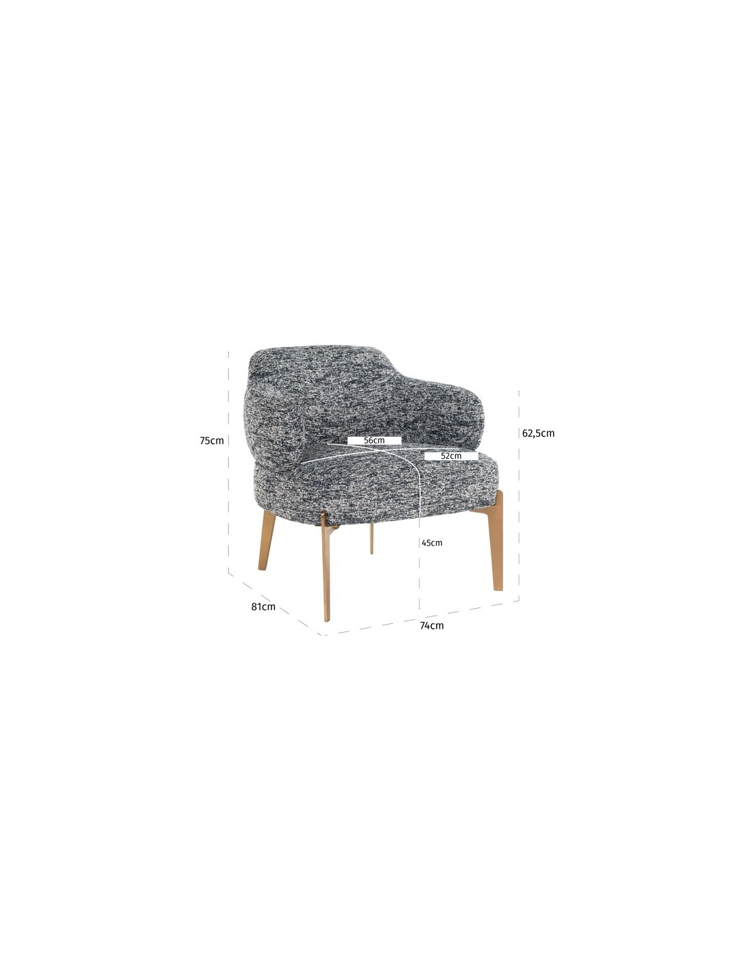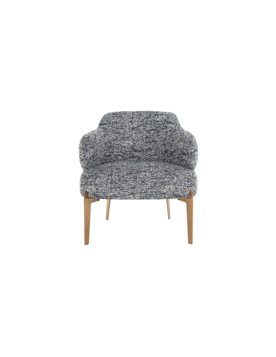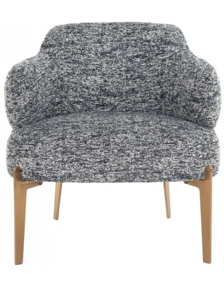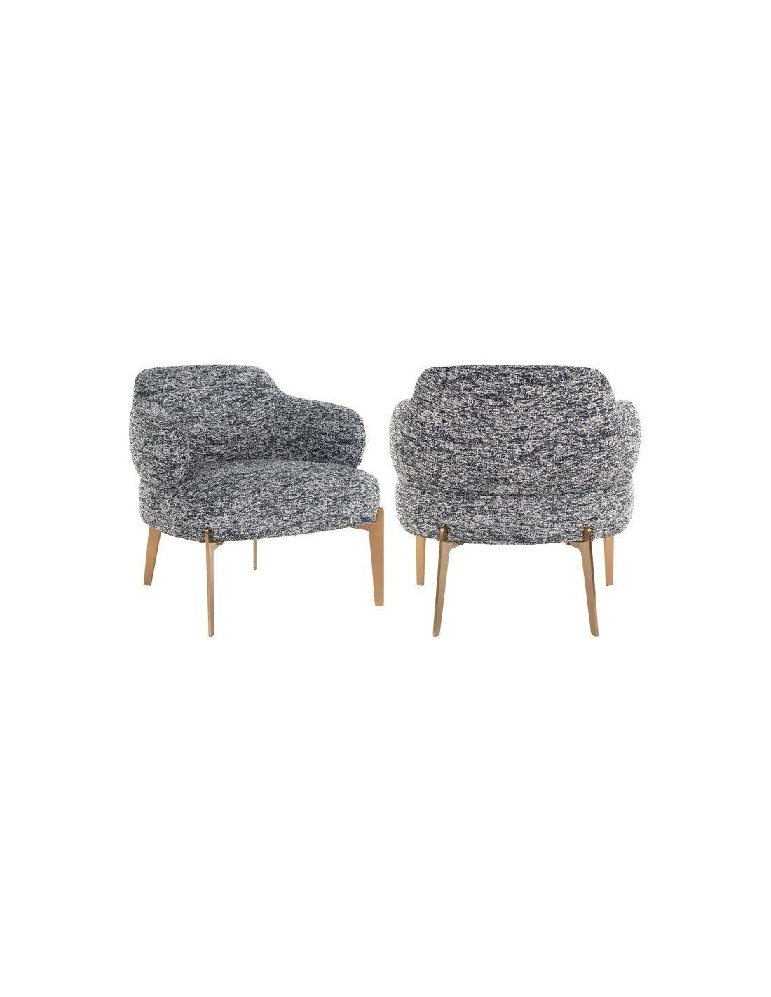 Lænestol i et design fra hollandske Richmond Interiors. Stolen er fremstillet i messinglakeret stål og sort og hvid meleret polyester. Stolen måler 75 cm i højden over ryggen og med en siddehøjde på 45 cm.