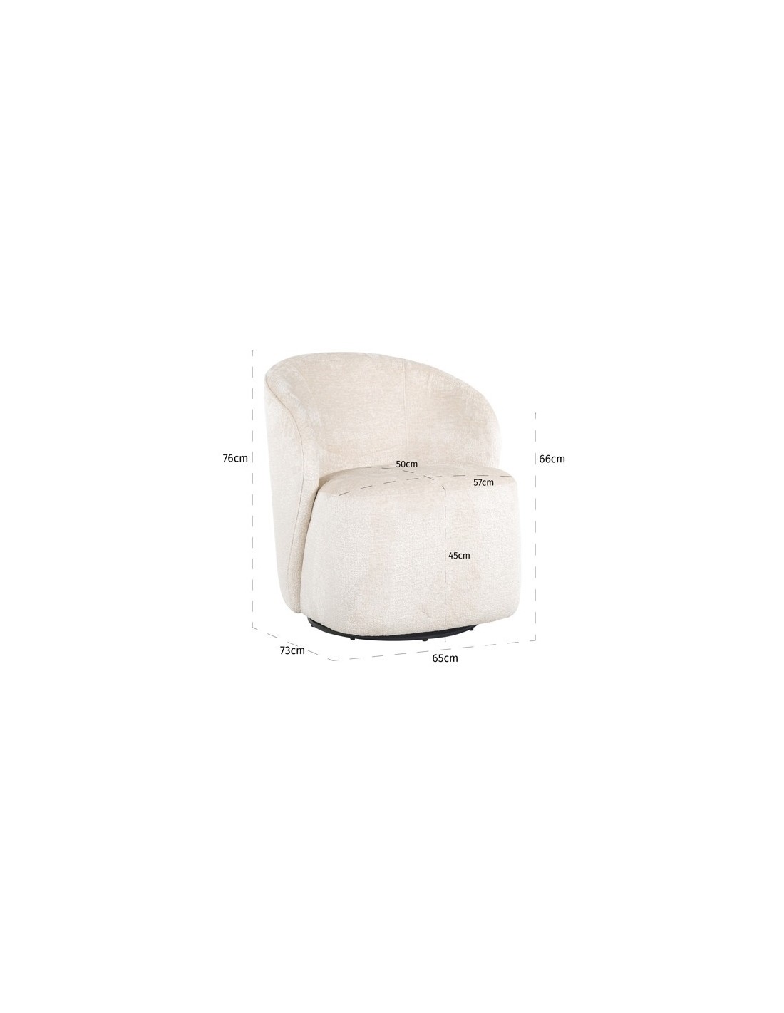 Sofia rotérbar lænestol i chenille H76 cm - Hvid