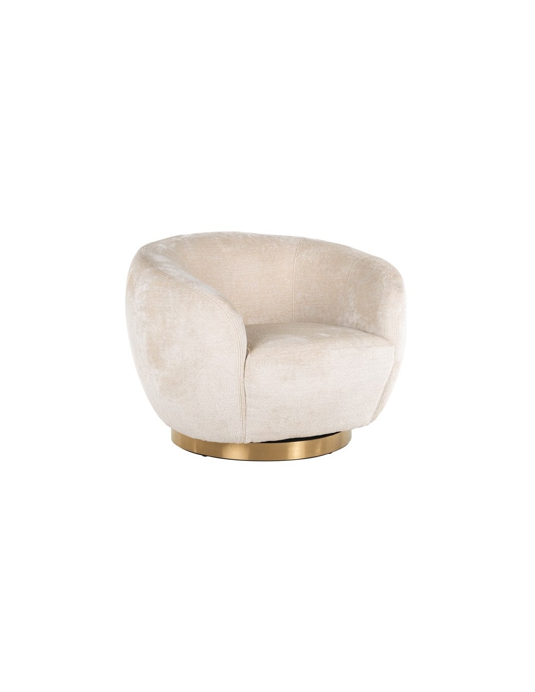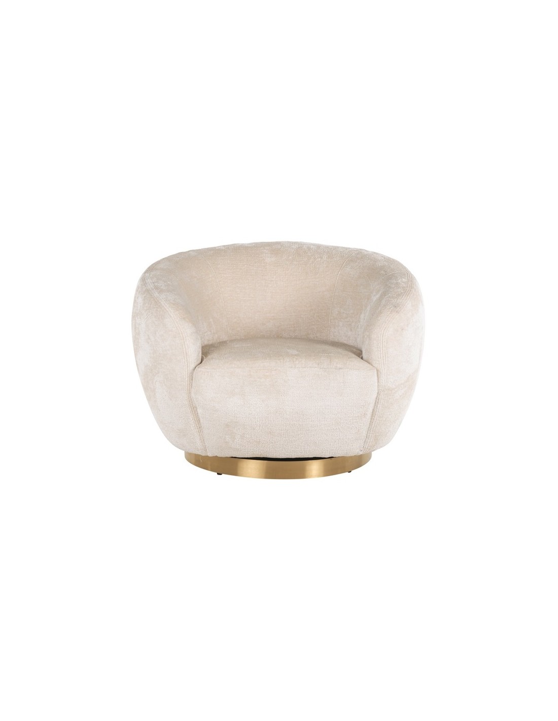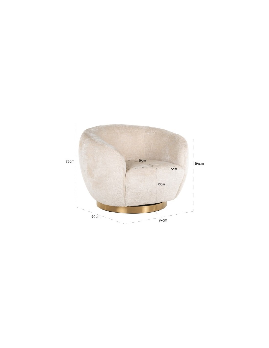 Layla rotérbar lænestol i chenille H75 cm - Messing/Hvid
