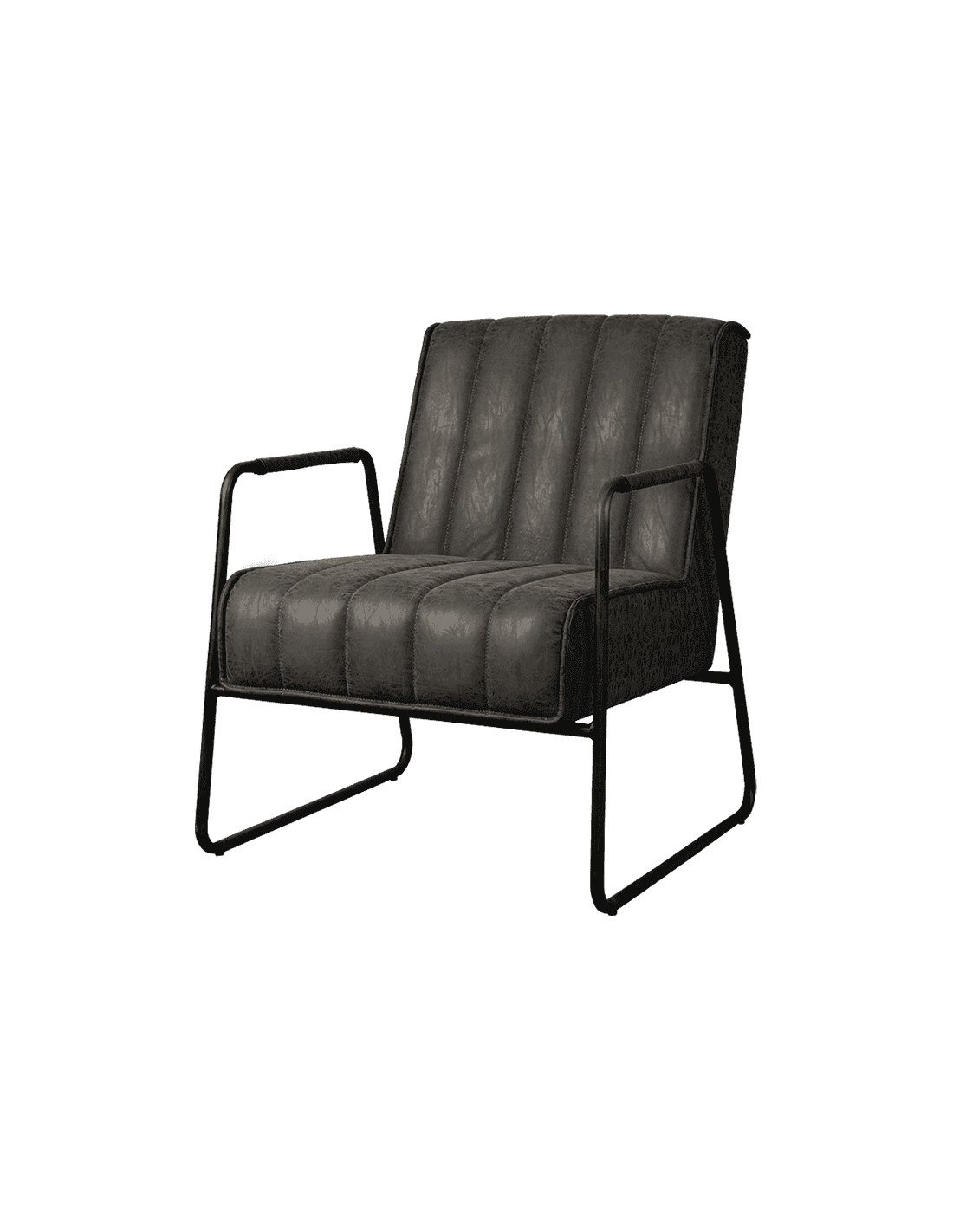 Lænestol udført i et design af vintage antracit microfiber og med stel i sortlakeret metal. Stolen måler 81 cm i højden over ryggen og 64 cm i bredden og er polstret med højkvalitets skum.