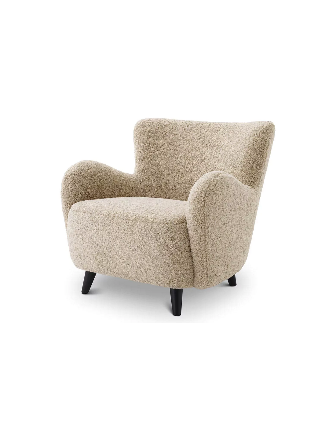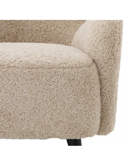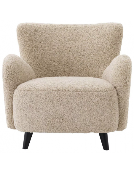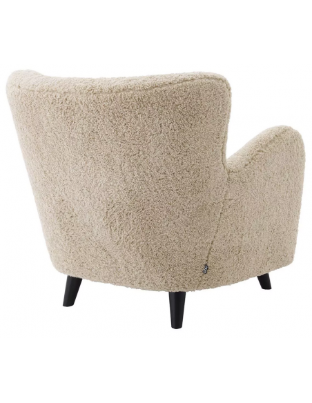 Eichholtz Svante S lænestol udført i et design af sandfarvet bouchlé polyester og sortlakeret træ. Lænestolen måler 80 cm i højden over ryggen og 80 x 72 cm i bredde og dybde. Siddehøjden er 38 cm.