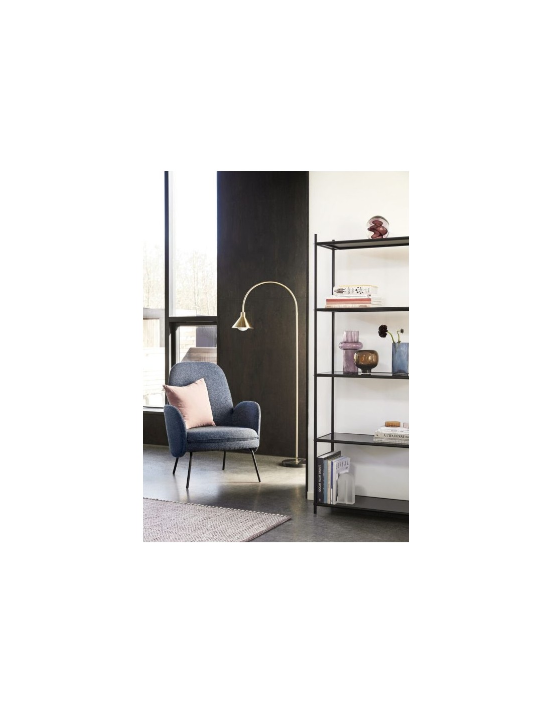 Hübsch Blues lænestol med skammel i metal og polyester H94 cm - Sort/Mørkeblå