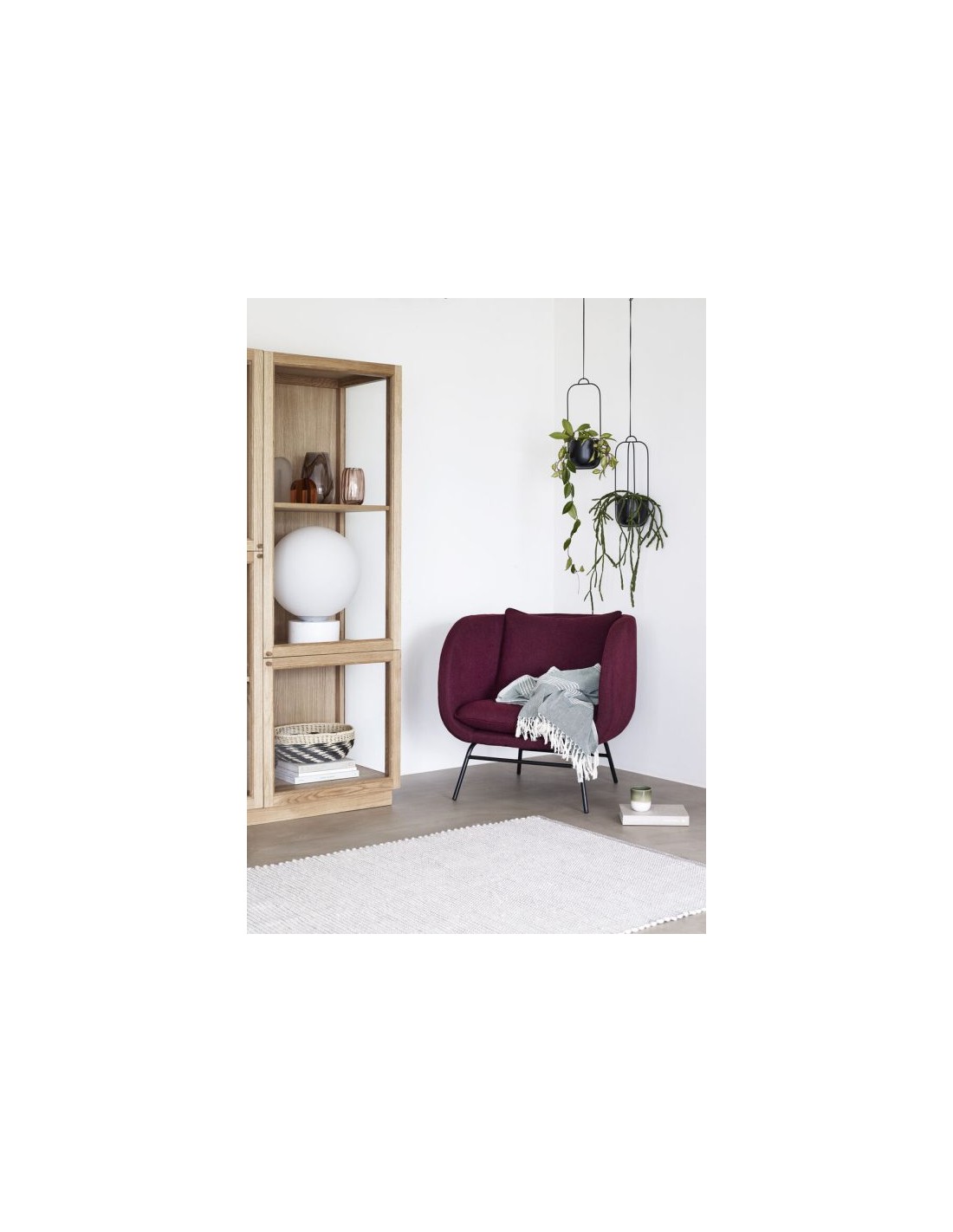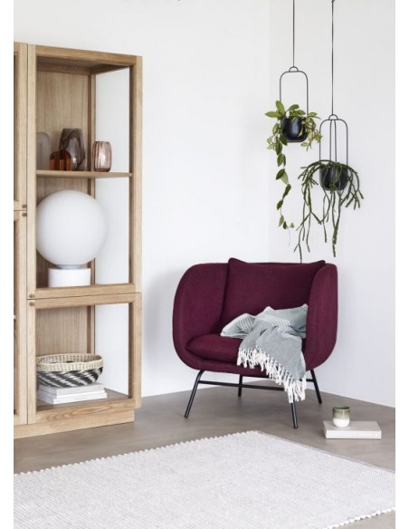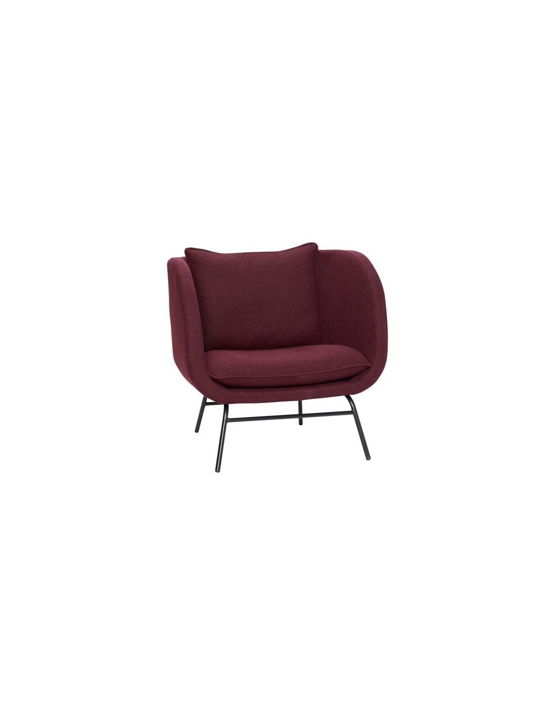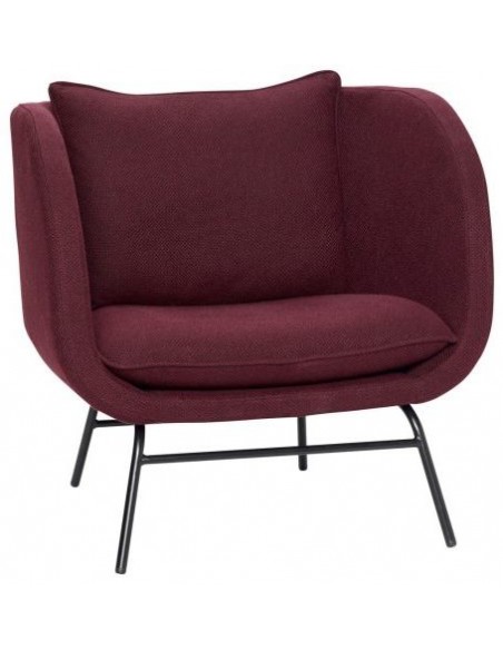 Hübsch Around lænestol udført i et design af sortlakeret metal og bordeaux polyester. Stolen måler 77 cm i højden over ryggen og 80 x 75 cm i bredde og dybde. Stolens siddehøjde er 41 cm.