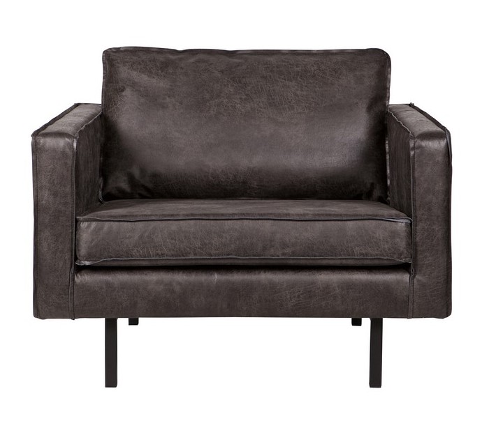 Moderne lænestol udført i et flot design af vintage sort læder. Lænestolen måler 105 cm i bredden og er polstret med højkvalitets skum.