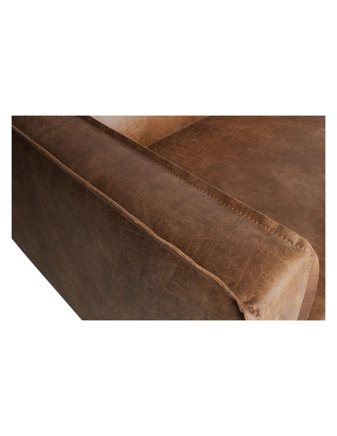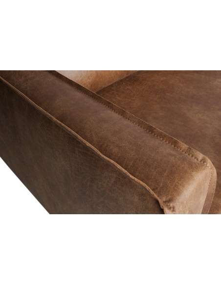 Moderne lænestol udført i et flot design af vintage cognacfarvet læder. Lænestolen måler 105 cm i bredden og er polstret med højkvalitets skum.
