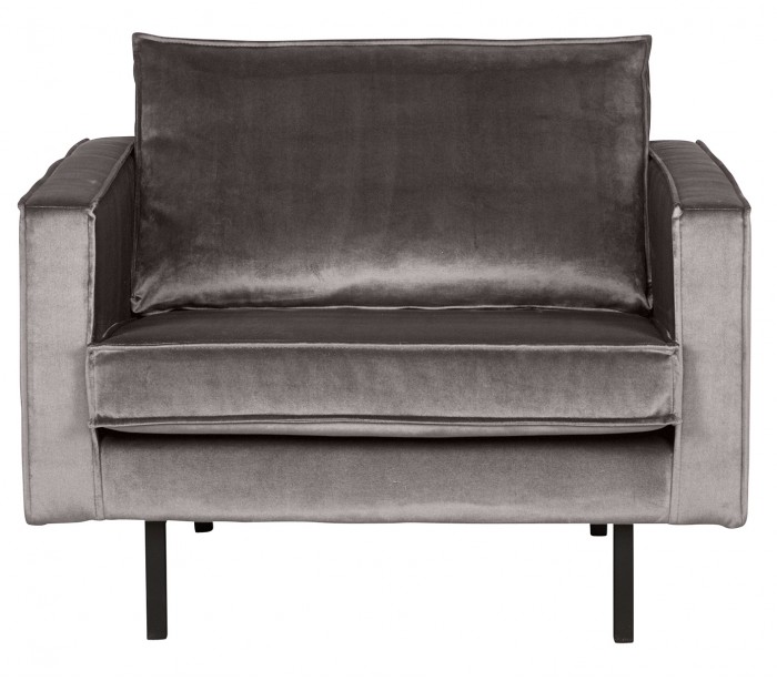Moderne lænestol udført i et flot design af taupe farvet velour. Lænestolen måler 105 cm i bredden og er polstret med højkvalitets skum.