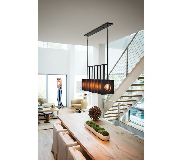 Ludlow langbordspendel i et design fra Hinkley under Quintiesse. Lampen måler 67 - 143 cm i højden og 95 x 26 cm i bredde og dybde. Lampen leveres til europæisk standard til 8 x E27 lyskilder, max. 40W (Ekskl.).