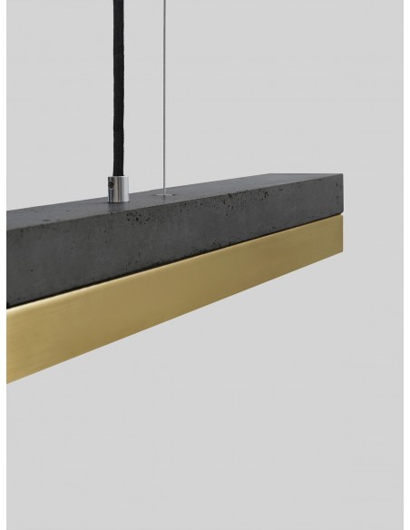 Langbordspendel i et moderne design fra GANTlights. Lampen måler 182 cm i længden og kommer med indbygget dæmpbar LED lyskilde på 25W. Lampen er fremstillet i rå mørk beton og messing.