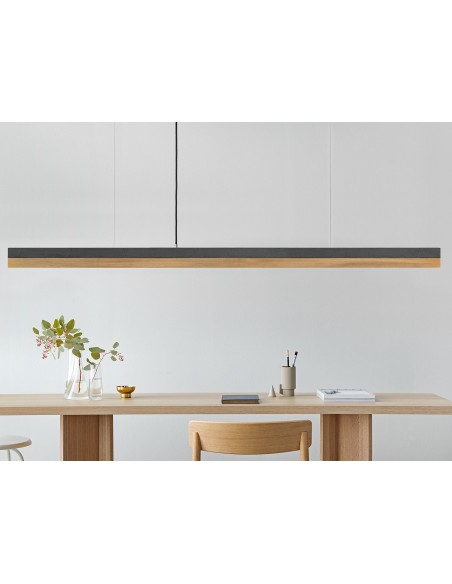 Langbordspendel i beton og egetræ 182 cm 25W LED - Mørk beton/Egetræ