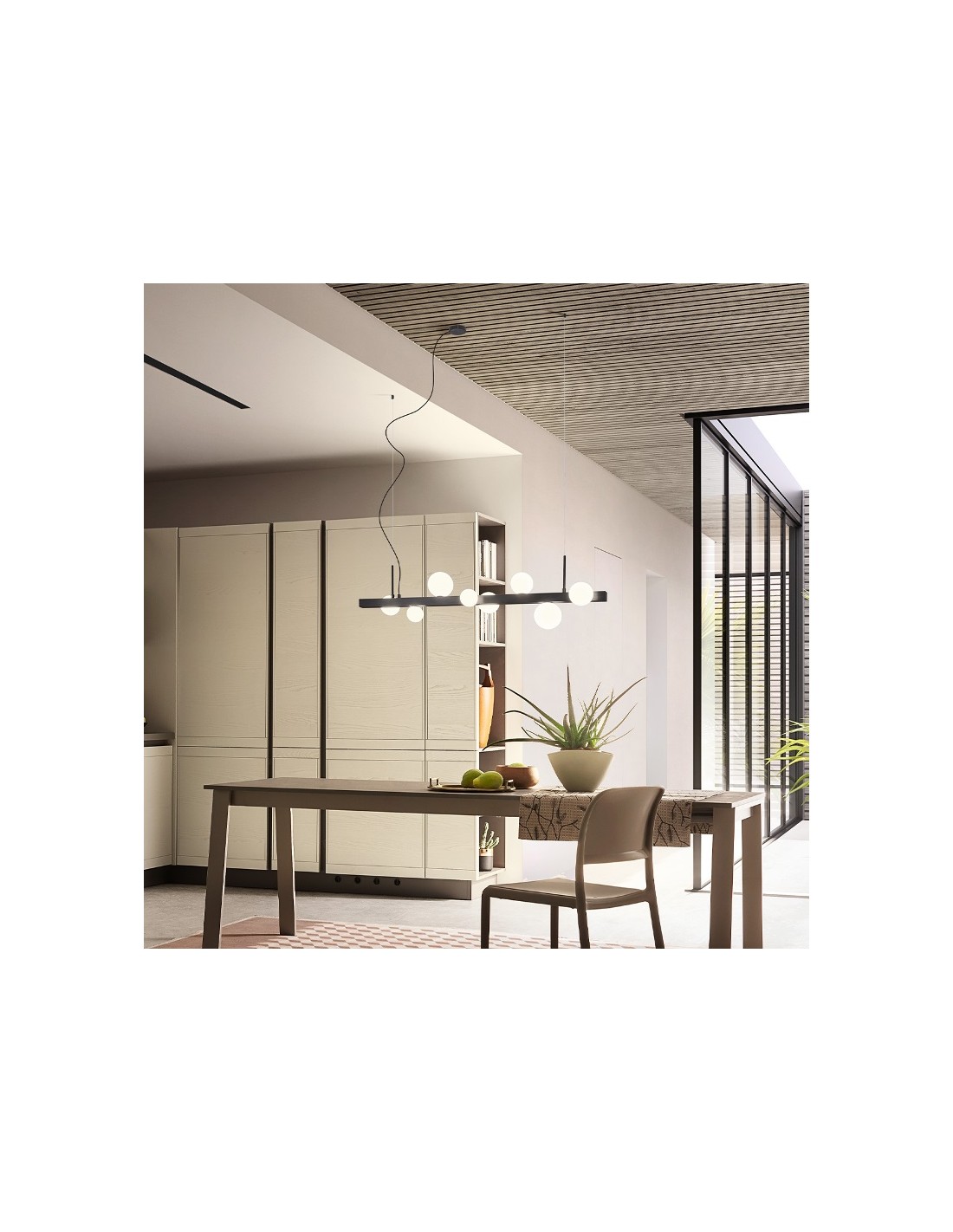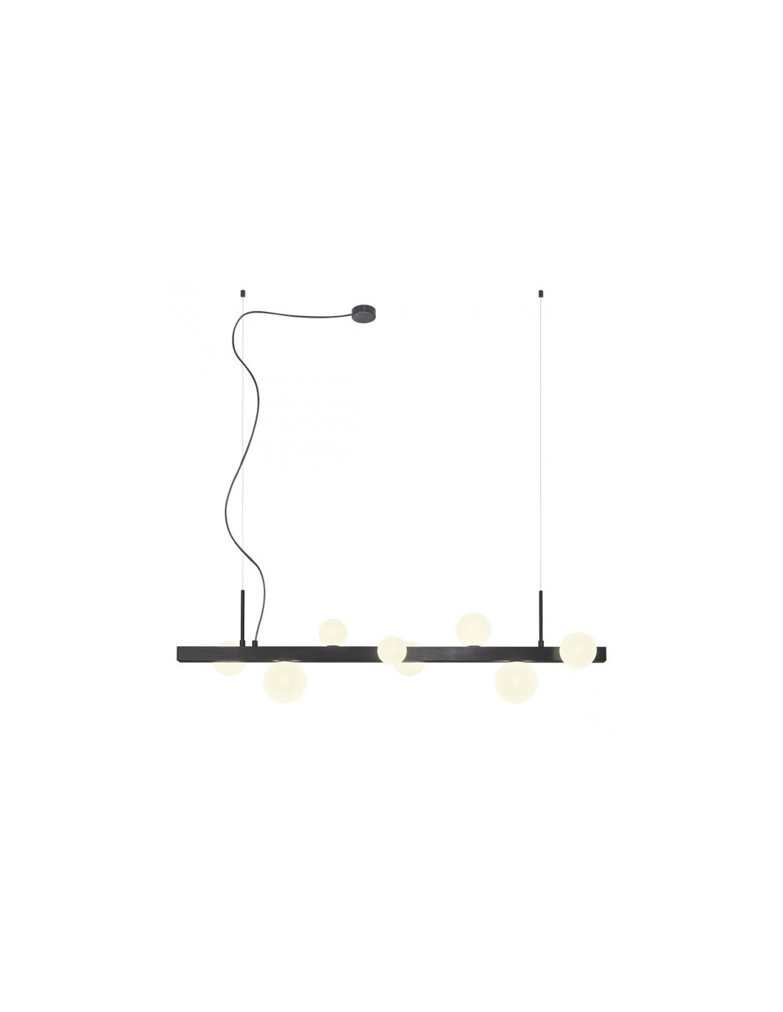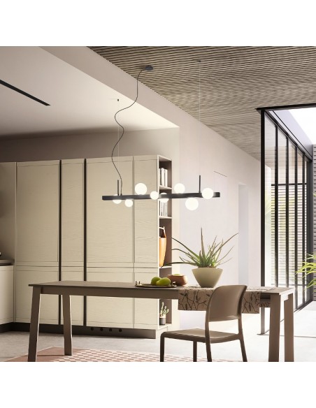 GOJI Langbordspendel i aluminium og glas B120 cm 8 x G9 - Sort/Opalhvid