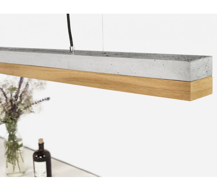 Langbordspendel i beton og egetræ 122 cm 25W LED - Lys beton/Egetræ