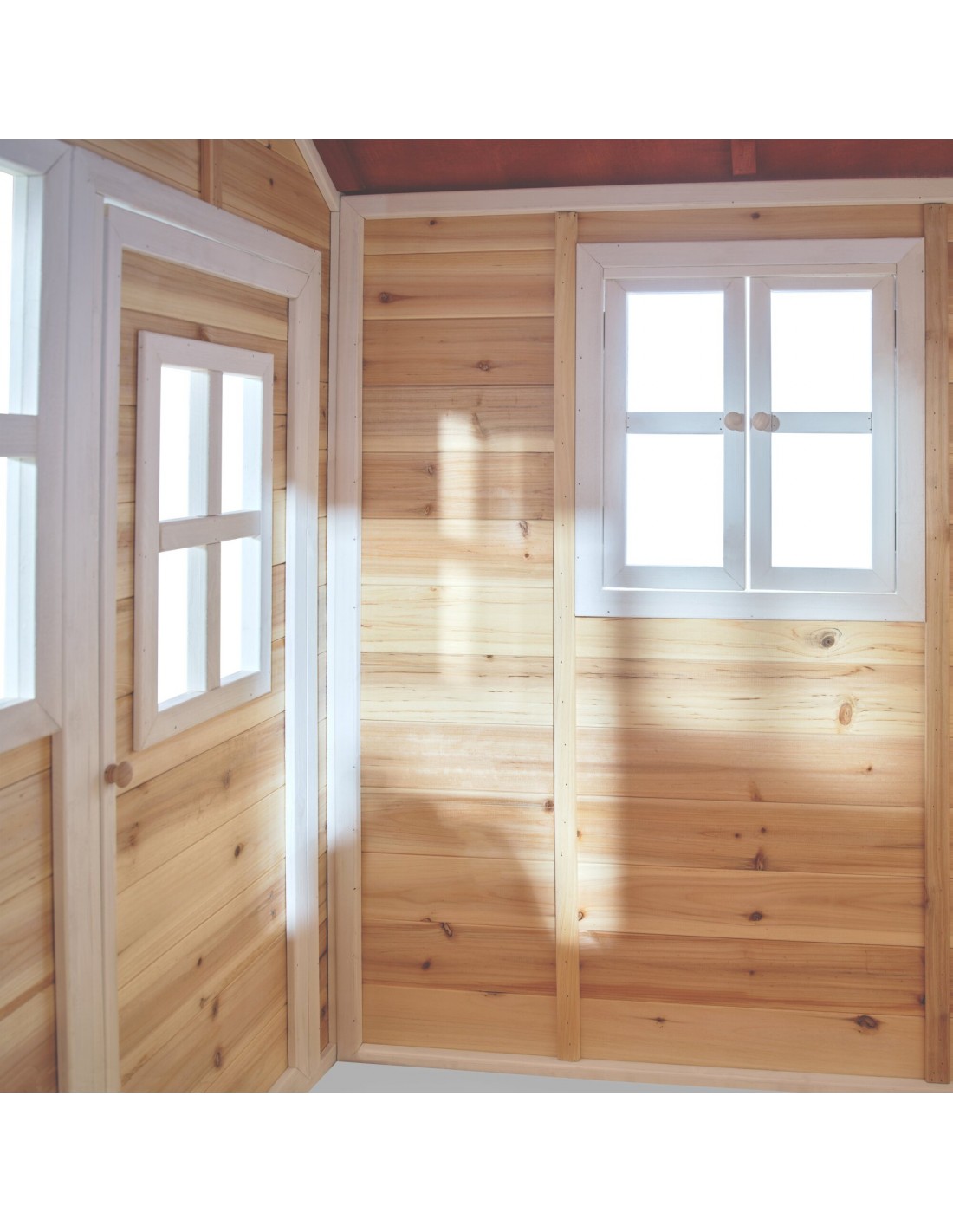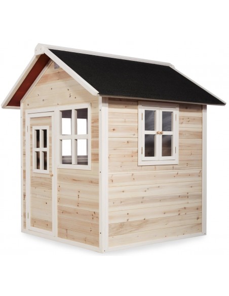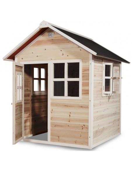 Legehus til børn, udført i et design af vejrbestandigt naturfarvet cedertræ. Legehuset måler 149 x 135 cm i bredde og dybde og 159 cm i højden. Legehuset leveres af præfabrikerede dele, der gør, at det er hurtigt at samle. Legehuset er vejrbestandigt takket være det vandtætte bitumentag, og det er lavet af FSC®-certificeret cedertræ (FSC 100 %, FSC® SCS-COC-007799). Denne type af træ splinter ikke og er naturligt modstandsdygtig over for vejrpåvirkninger såsom regn, og træet rådner derfor ikke så let. Legehuset kan selvfølgelig behandles løbende, men det er ikke nødvendigt at behandle legehuset før brug.