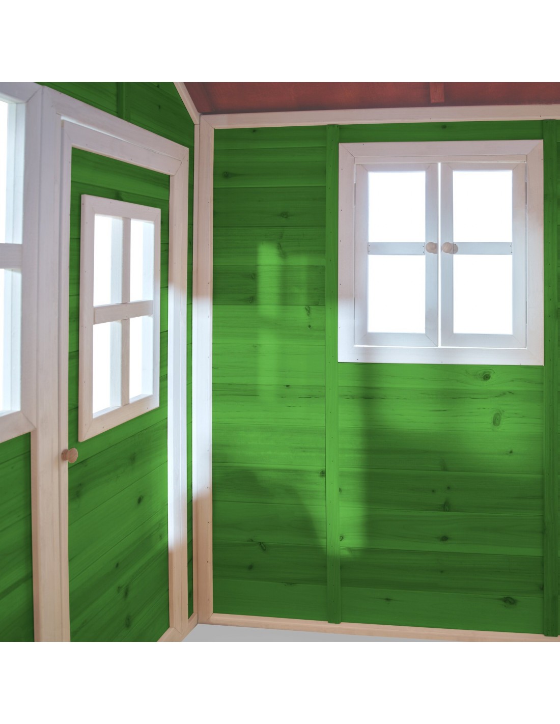 Legehus til børn, udført i et design af vejrbestandigt grønlakeret cedertræ. Legehuset måler 149 x 135 cm i bredde og dybde og 159 cm i højden. Legehuset leveres af præfabrikerede dele, der gør, at det er hurtigt at samle. Legehuset er vejrbestandigt takket være det vandtætte bitumentag, og det er lavet af FSC®-certificeret cedertræ (FSC 100 %, FSC® SCS-COC-007799). Denne type af træ splinter ikke og er naturligt modstandsdygtig over for vejrpåvirkninger såsom regn, og træet rådner derfor ikke så let. Legehuset kan selvfølgelig behandles løbende, men det er ikke nødvendigt at behandle legehuset før brug.