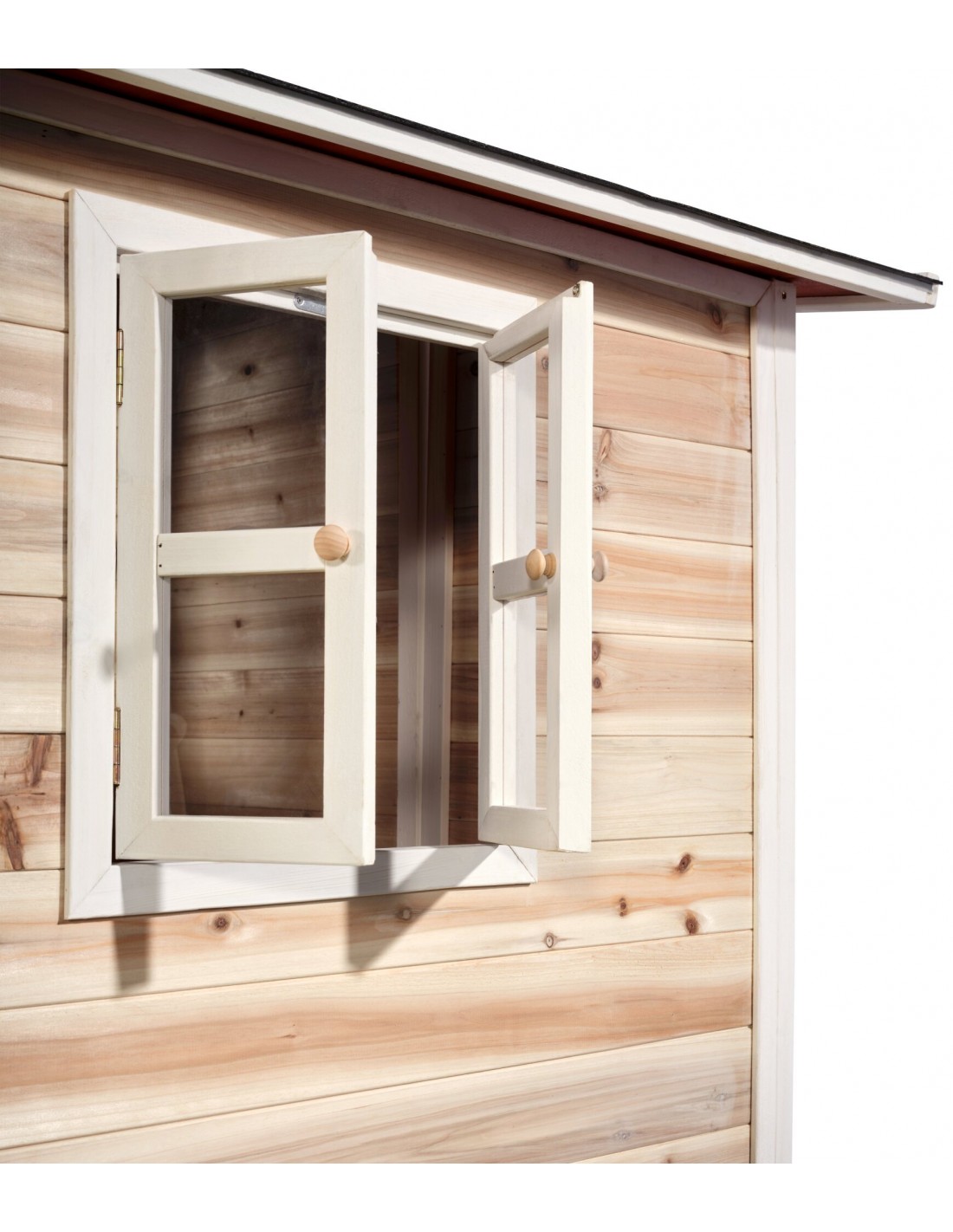 Legehus til børn, udført i et design af vejrbestandigt naturfarvet cedertræ. Legehuset måler 269 x 190 cm i bredde og dybde og 215 cm i højden. Legehuset leveres af præfabrikerede dele, der gør, at det er hurtigt at samle. Legehuset er vejrbestandigt takket være det vandtætte bitumentag, og det er lavet af FSC®-certificeret cedertræ (FSC 100 %, FSC® SCS-COC-007799). Denne type af træ splinter ikke og er naturligt modstandsdygtig over for vejrpåvirkninger såsom regn, og træet rådner derfor ikke så let. Legehuset kan selvfølgelig behandles løbende, men det er ikke nødvendigt at behandle legehuset før brug.