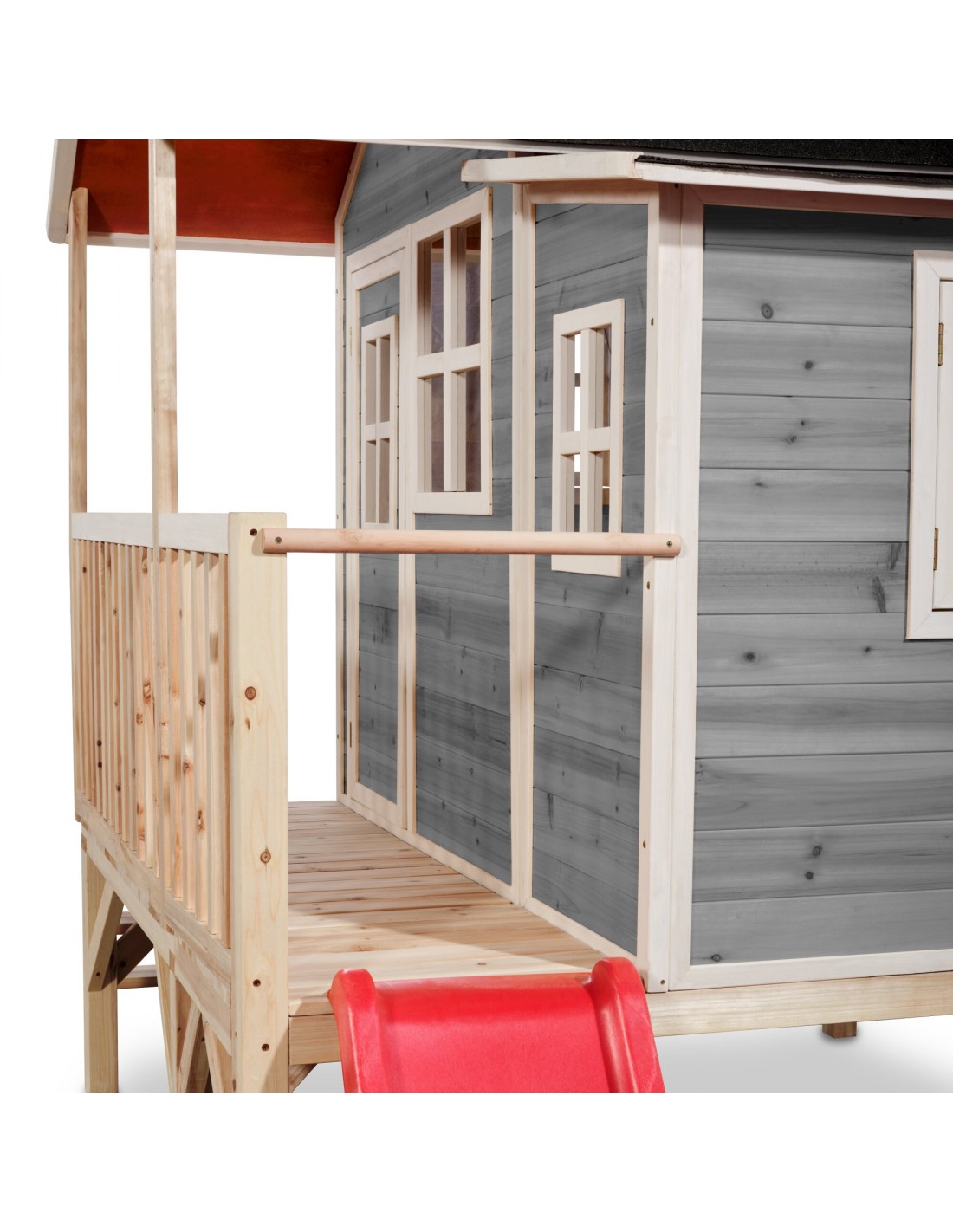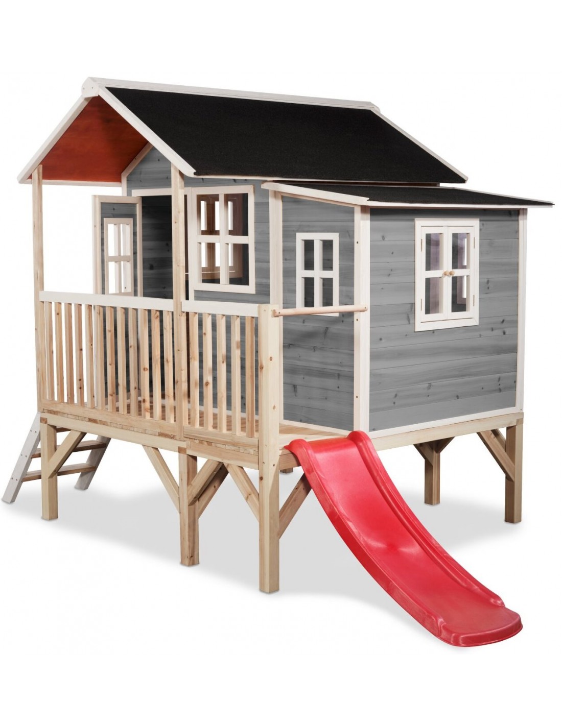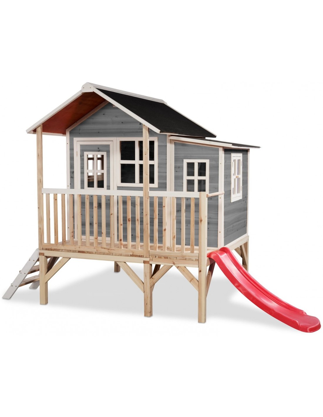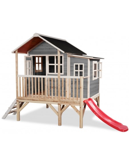 EXIT Loft 350 legehus i træ med rutsjebane - Grå