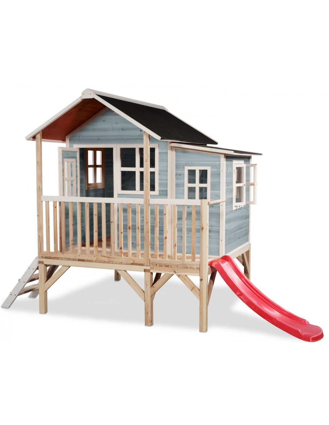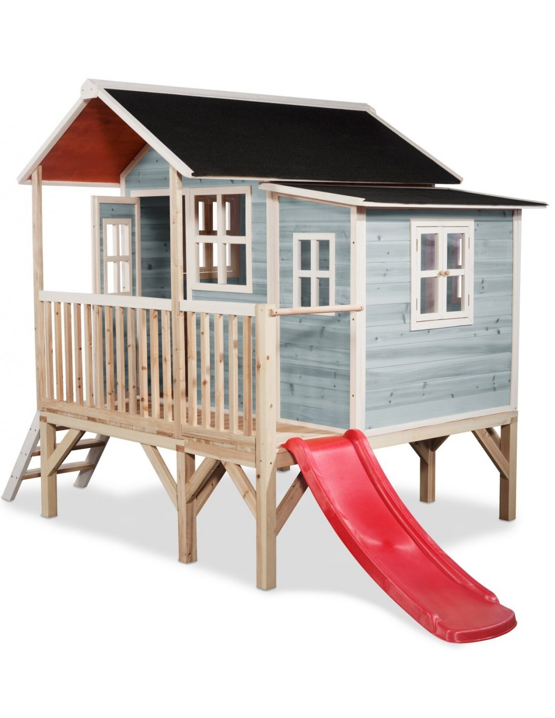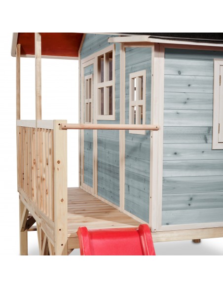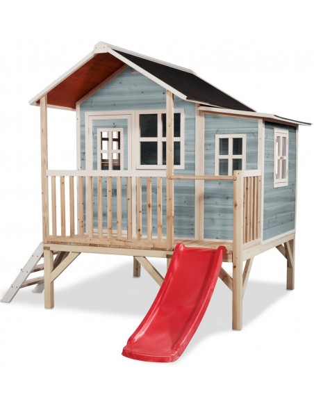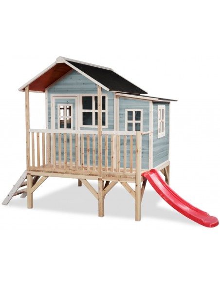 EXIT Loft 350 legehus i træ med rutsjebane - Blå
