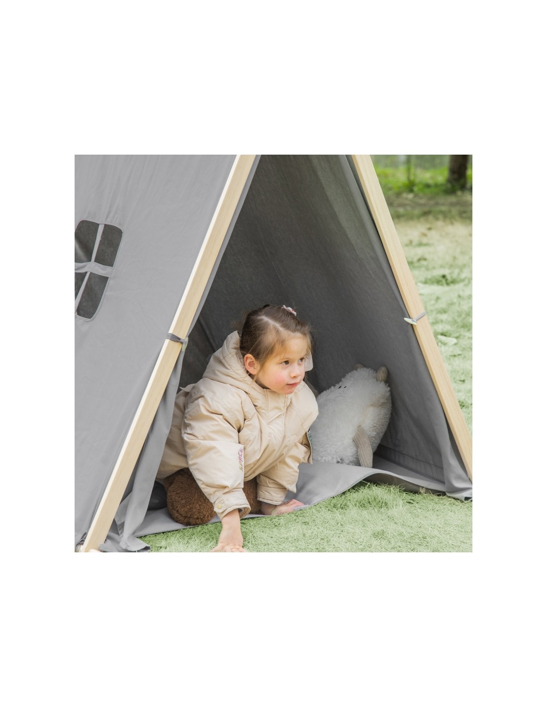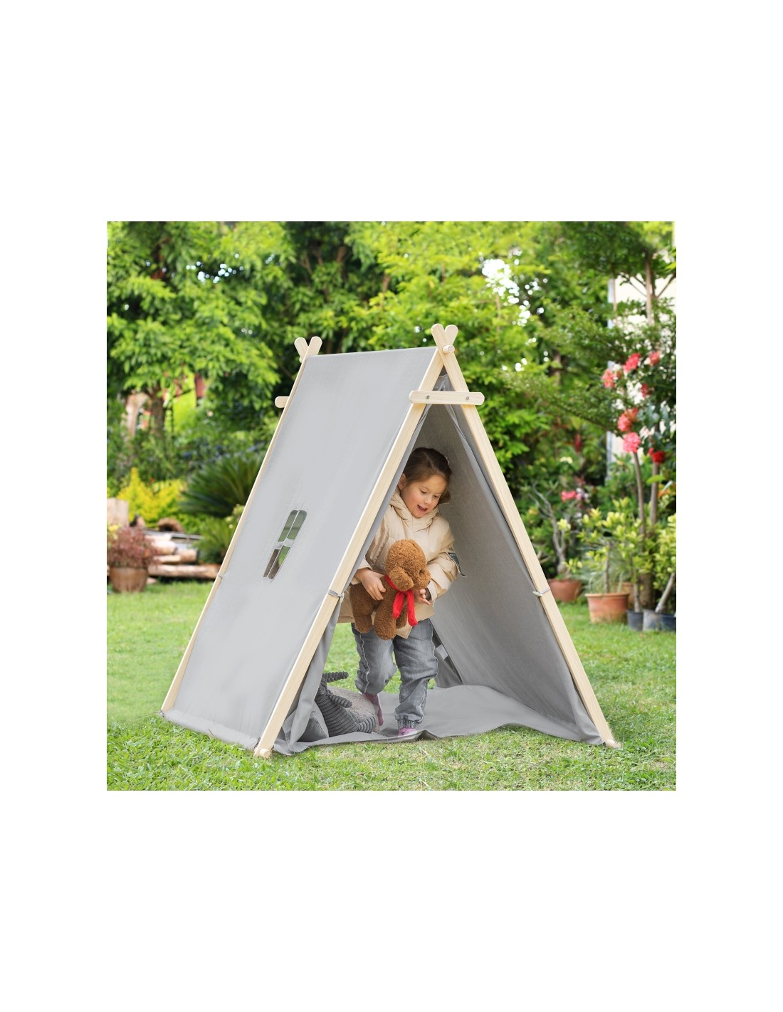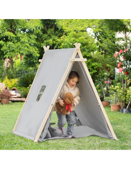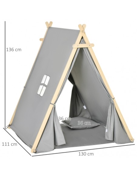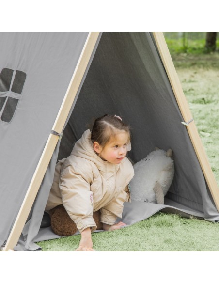 Legetelt tipi til børn H136 cm - Natur/Grå