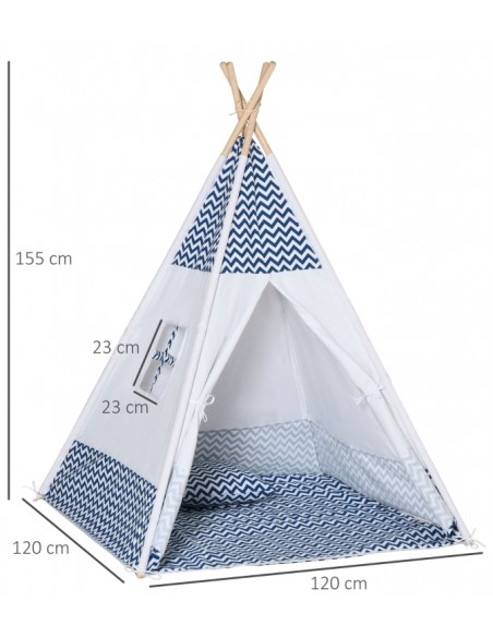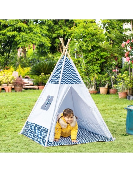 Legetelt tipi til børn H155 x B120 cm - Hvid/Blå
