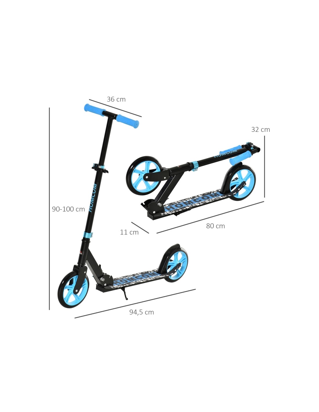 Løbehjul med PU hjul til børn L94,5 cm - Sort/Blå