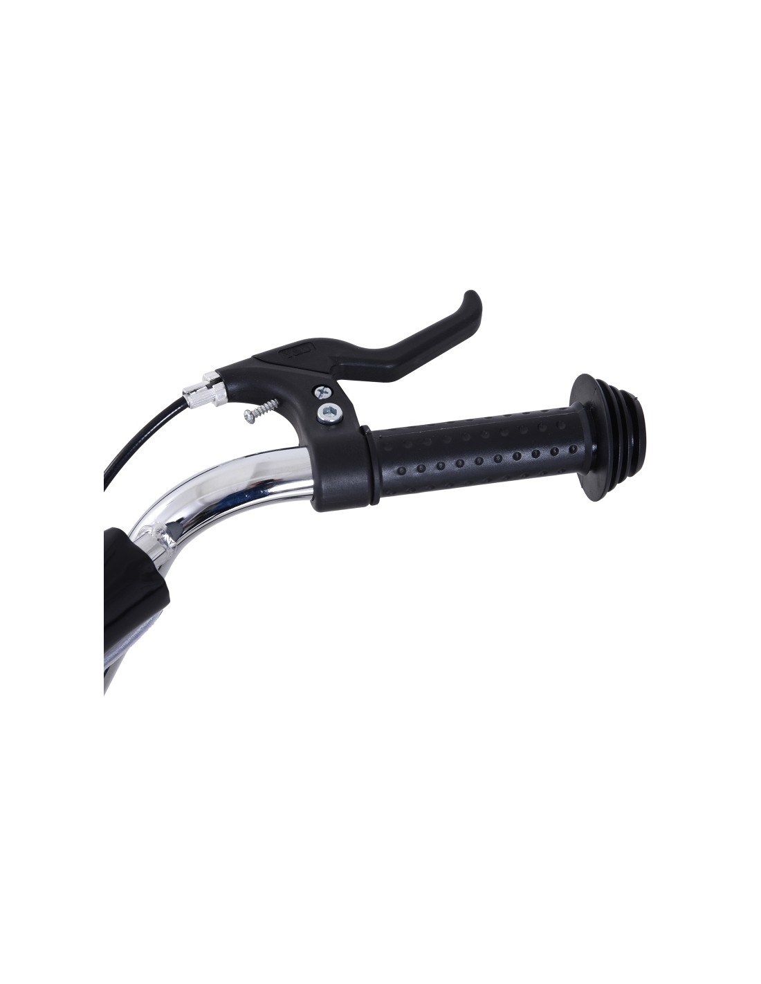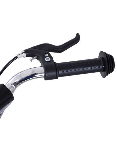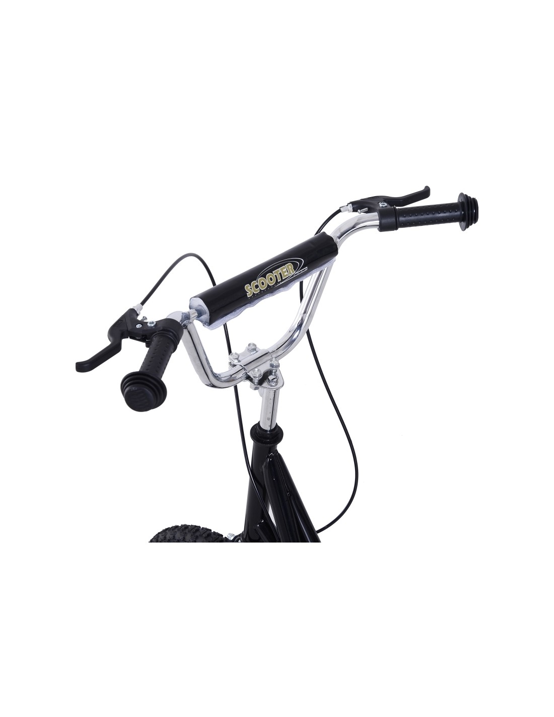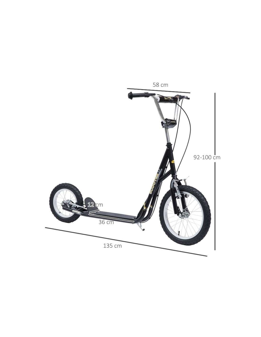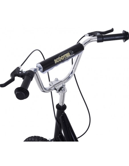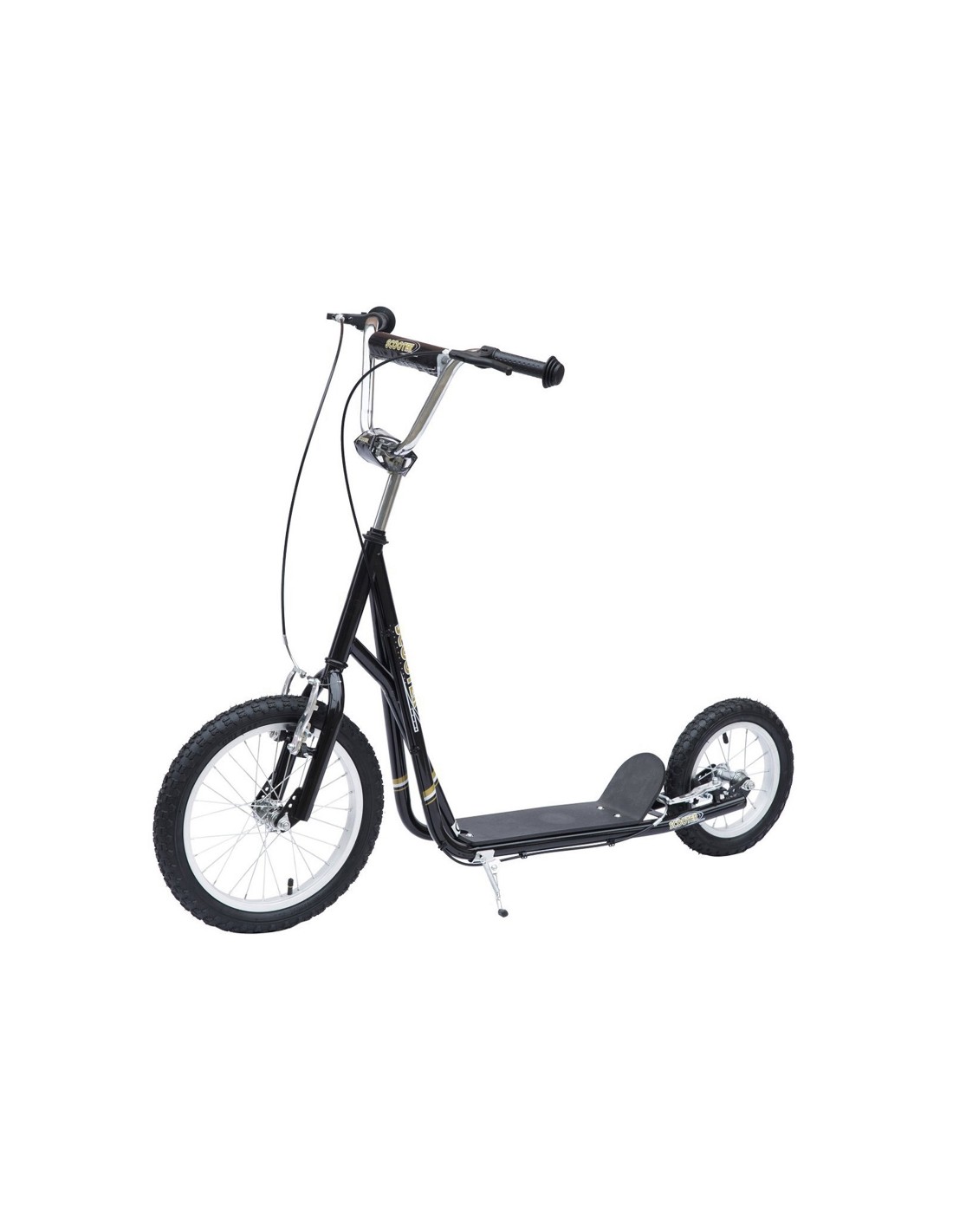 Løbehjul til børn, udført i et design af sort metal og kunststof med hjul i gummi. Løbehjulet måler 135 cm i længden og passer til børn fra 5 år.