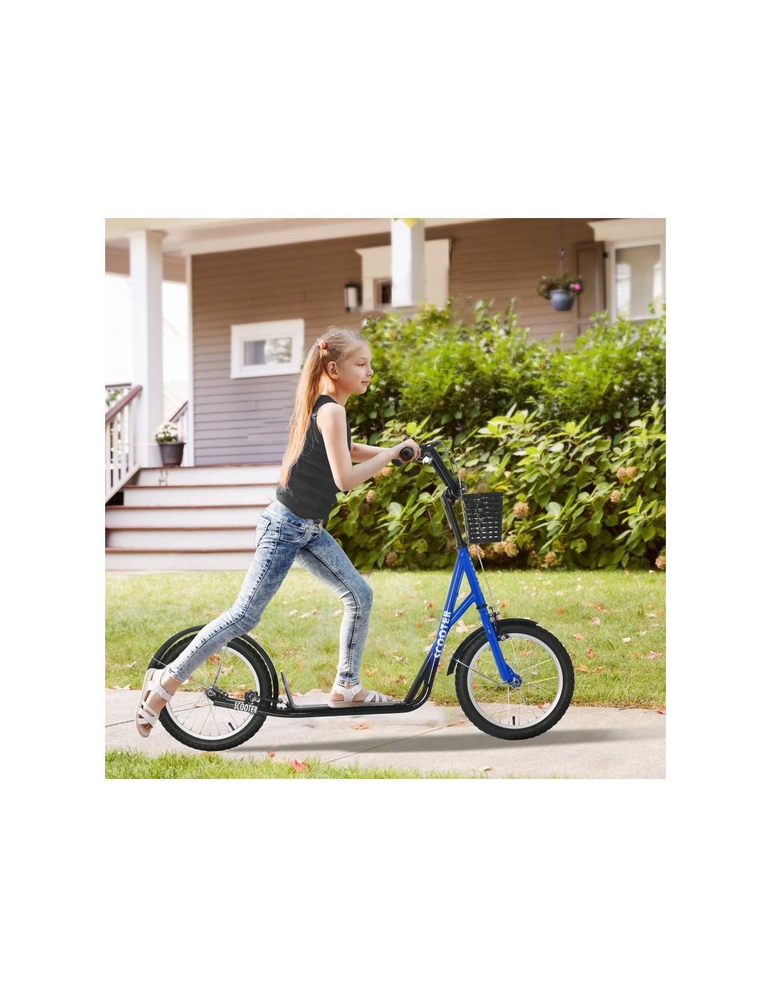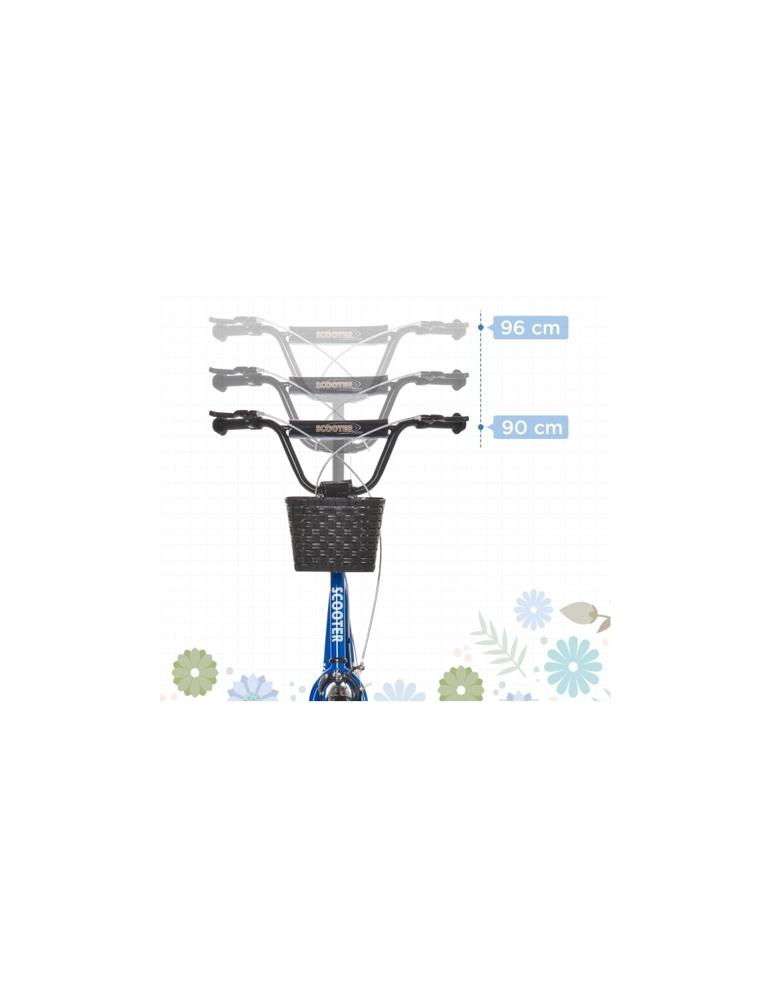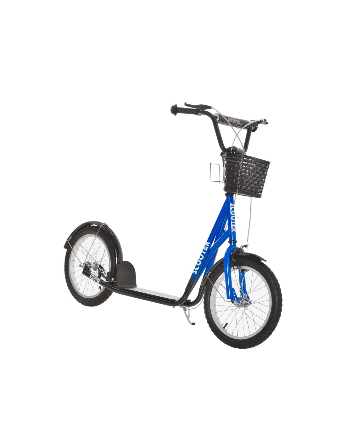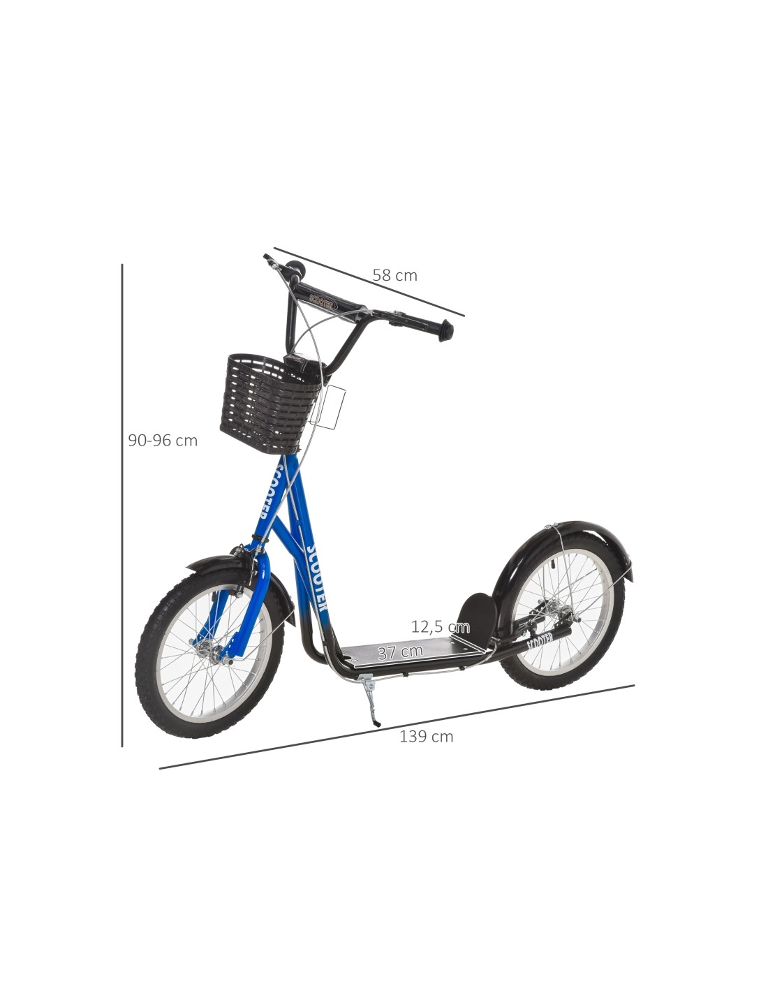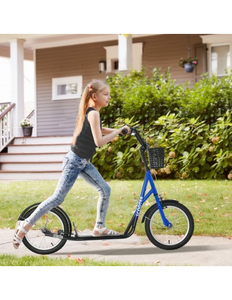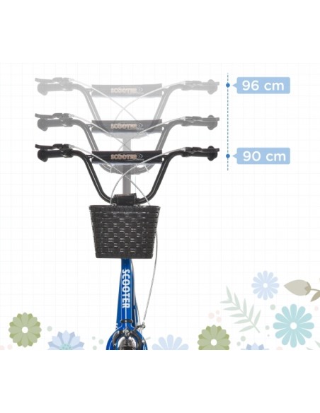 Løbehjul til børn, udført i et design af sort og blå metal og kunststof med hjul i gummi. Løbehjulet måler 139 cm i længden og passer til børn i alderen 5 - 12 år.