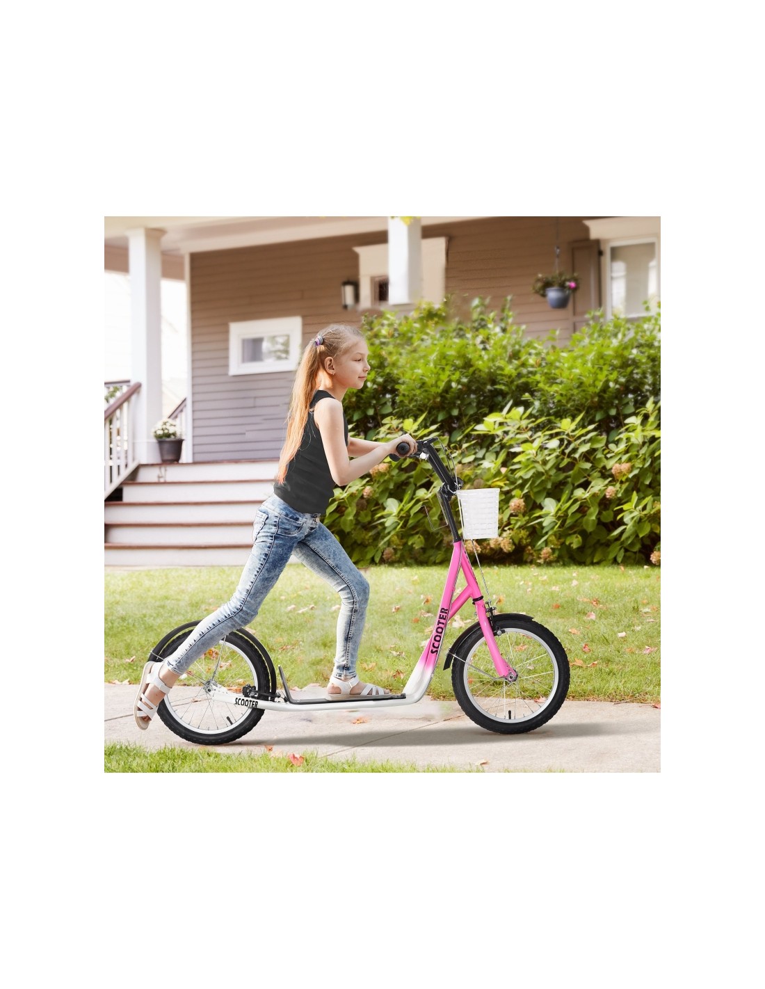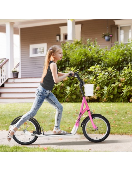 Løbehjul scooter med gummidæk til børn L139 cm - Sort/Rosa