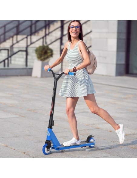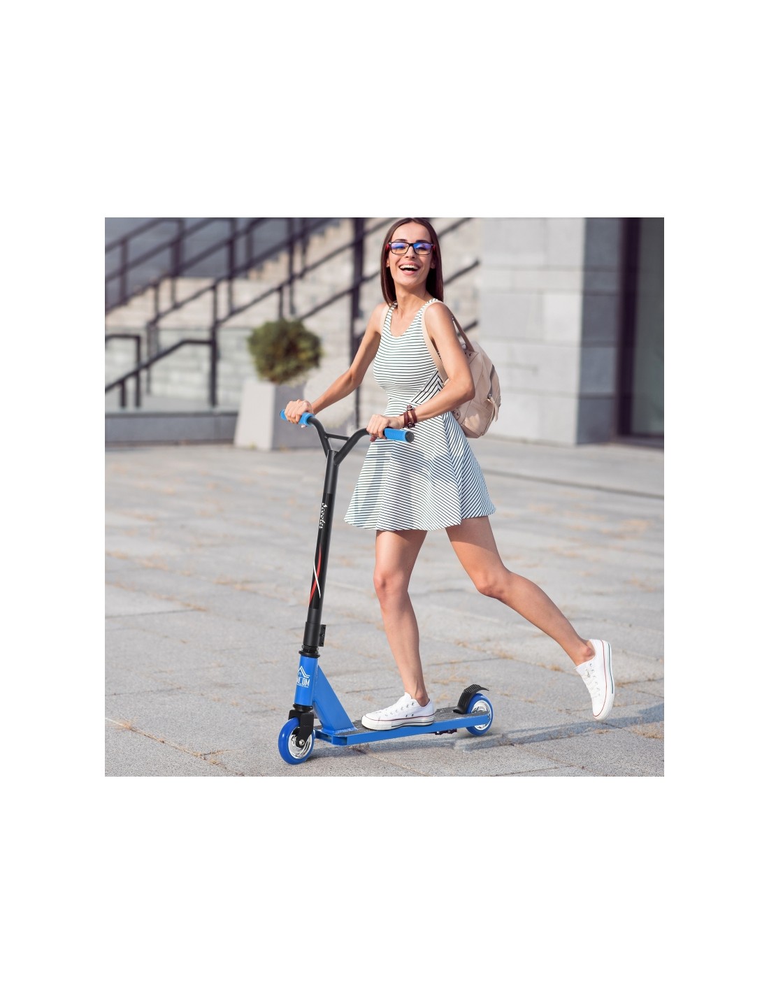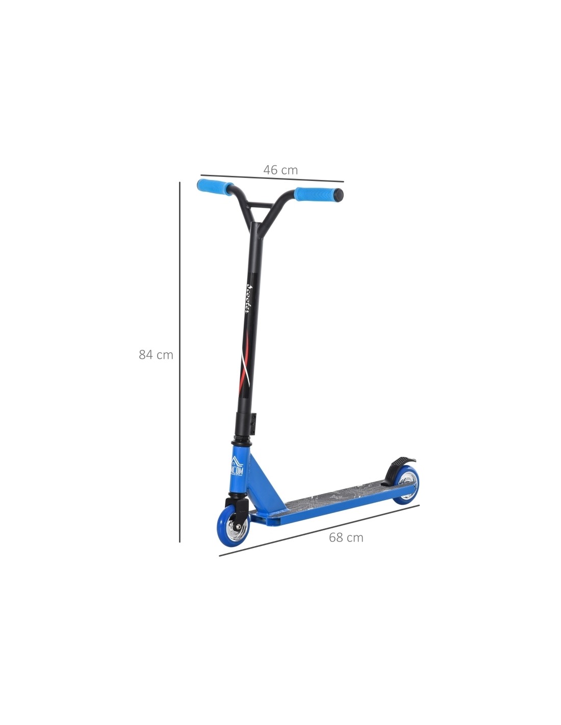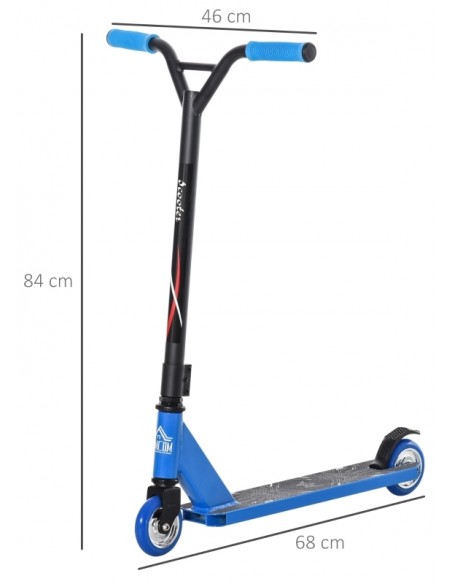 Løbehjul til børn, udført i et design af sort og blå metal og kunststof med hjul i PU. Løbehjulet måler 68 cm i længden og passer til børn i alderen fra 14 år.