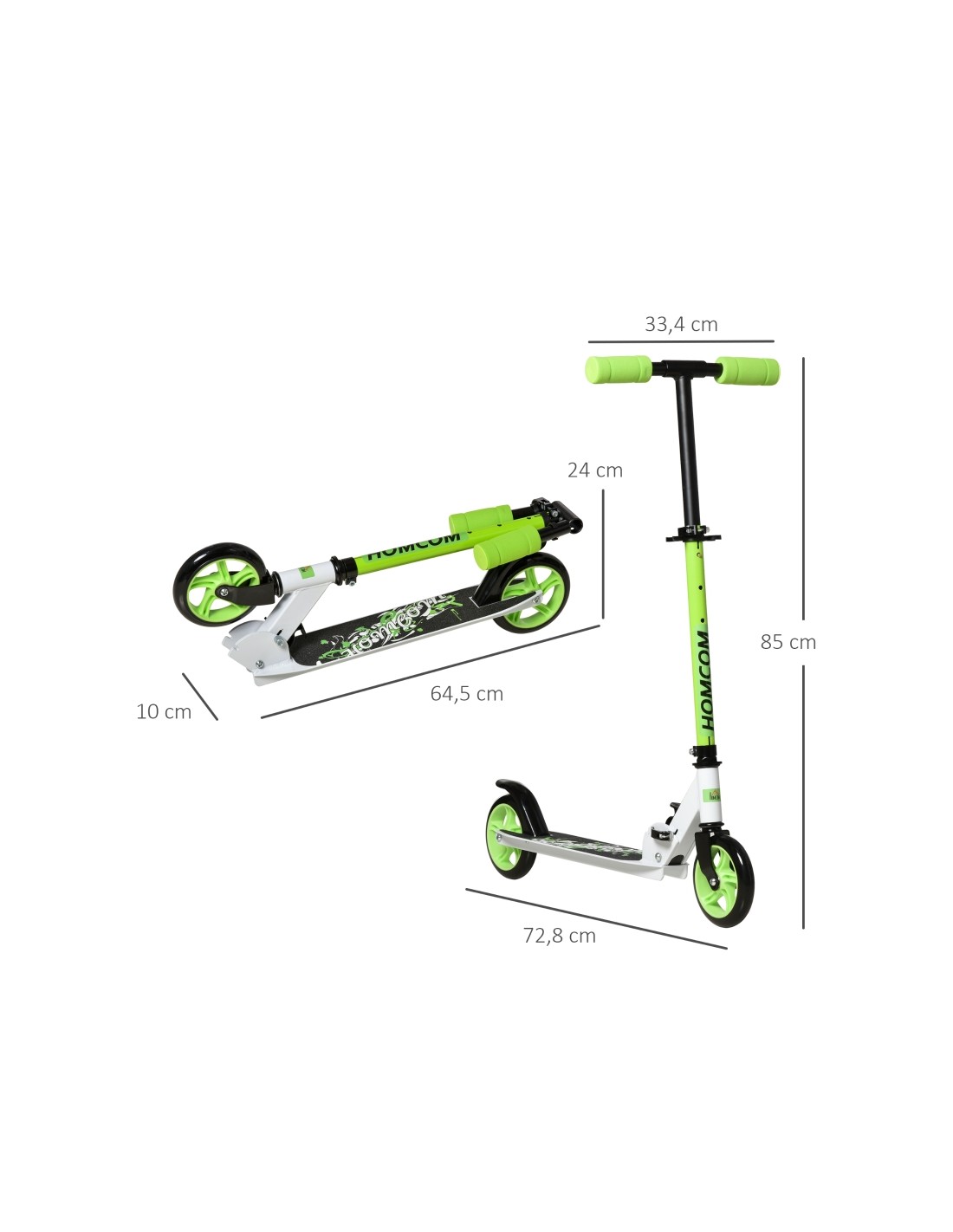 Løbehjul med PU hjul til børn L72,8 cm - Sort/Grøn
