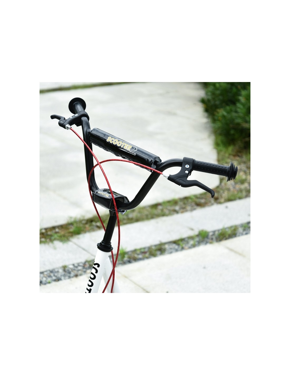 Løbehjul til børn, udført i et design af sort og hvid metal og kunststof med hjul i gummi. Løbehjulet måler 139 cm i længden og passer til børn i alderen 5 - 12 år.