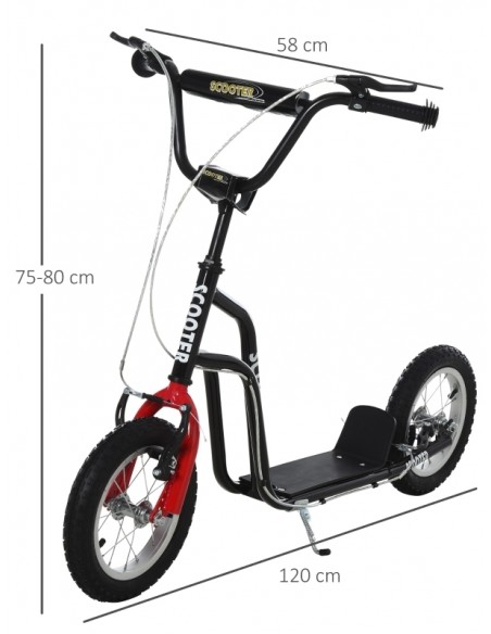 Løbehjul scooter med gummidæk til børn L120 cm - Sort/Rød