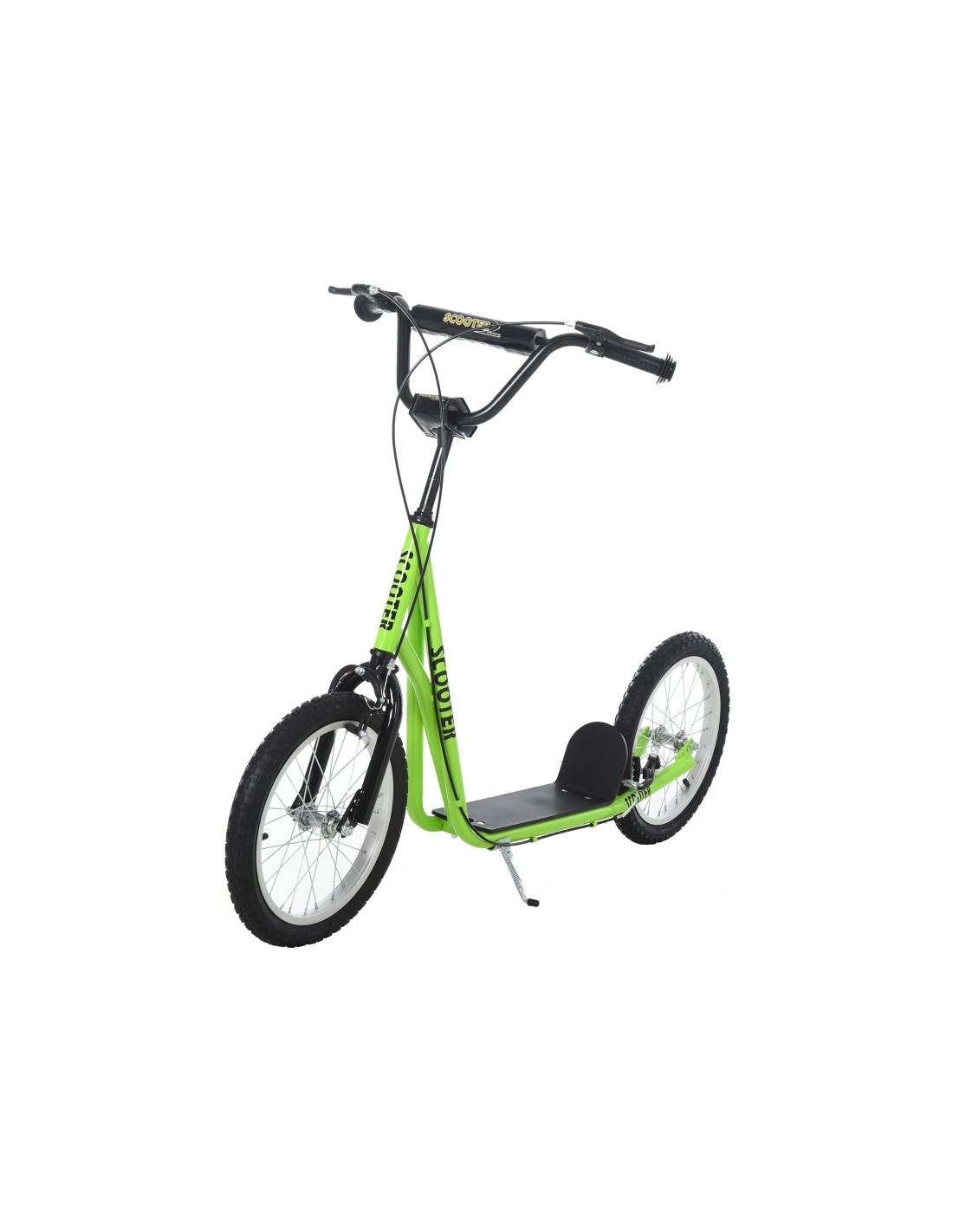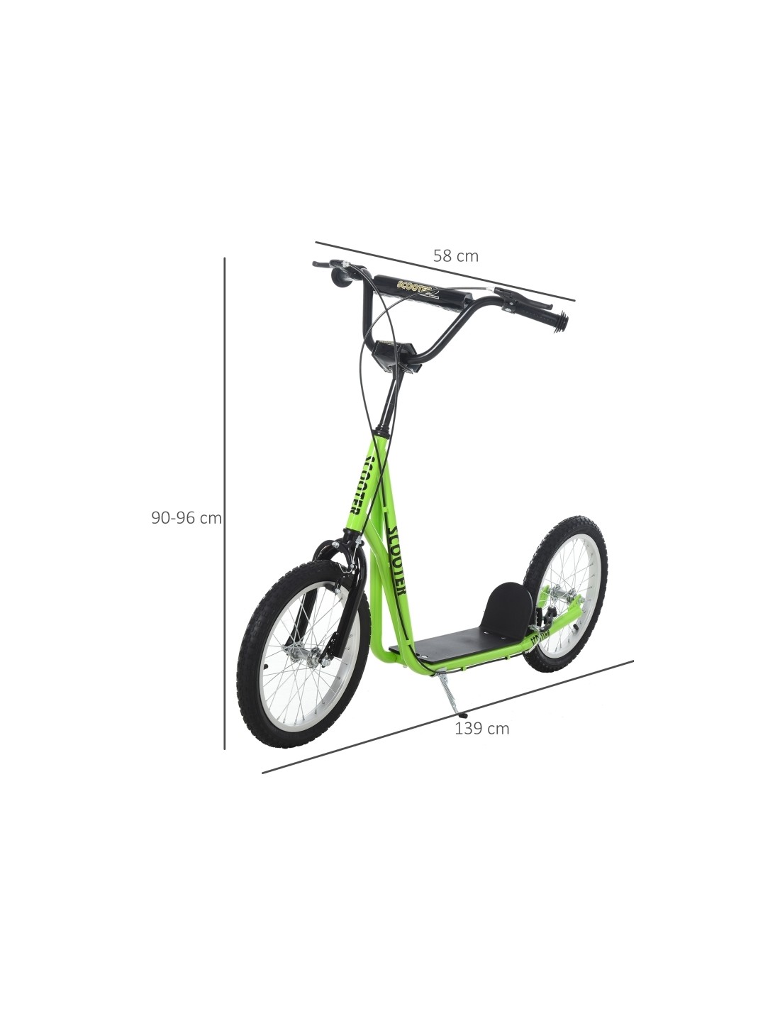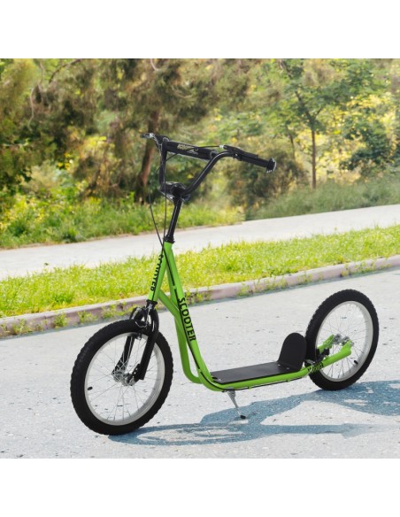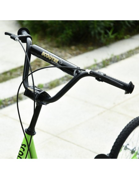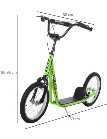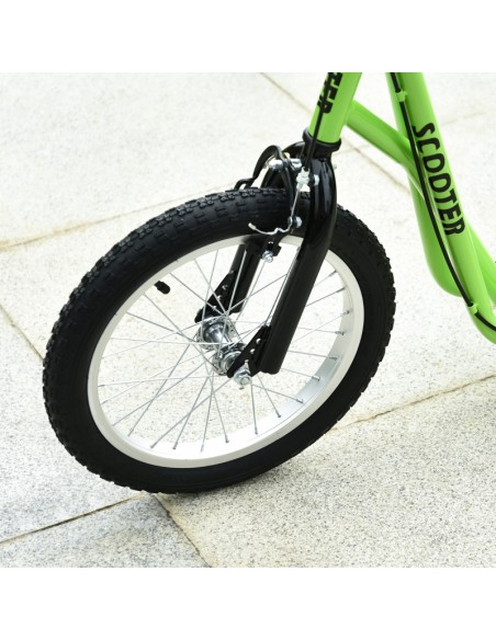 Løbehjul til børn, udført i et design af sort og grøn metal og kunststof med hjul i gummi. Løbehjulet måler 139 cm i længden og passer til børn i alderen 5 - 12 år.