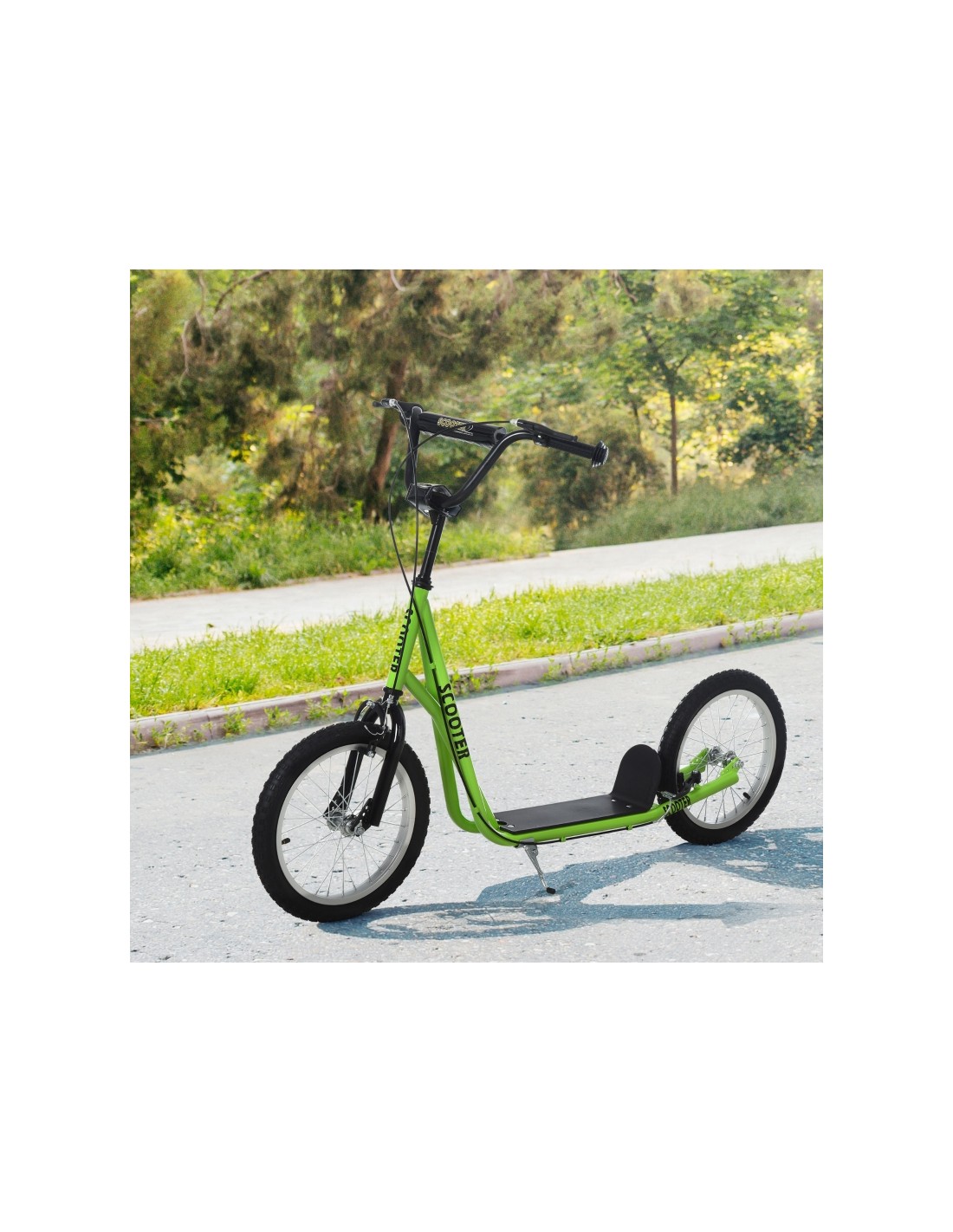 Løbehjul scooter med gummidæk til børn L139 cm - Sort/Grøn