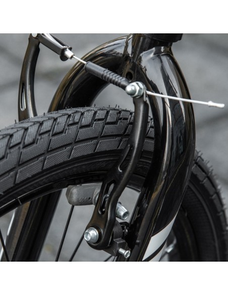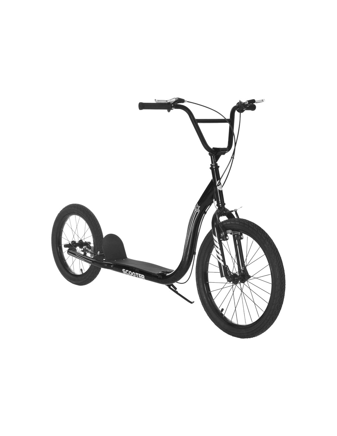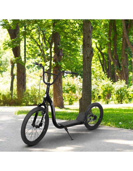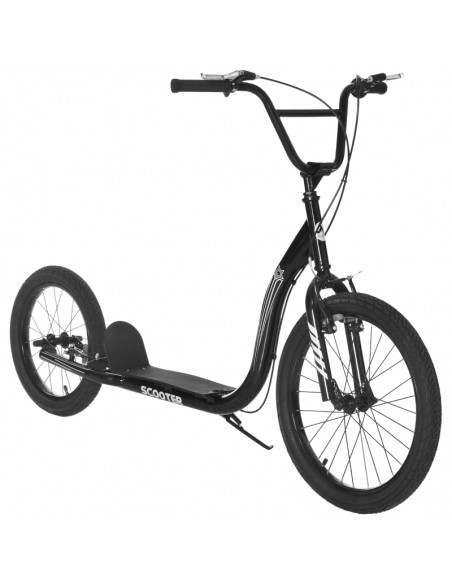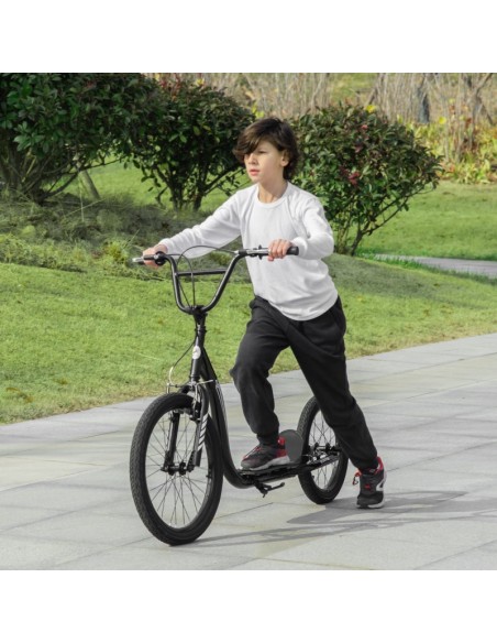 Løbehjul til børn, udført i et design af sort metal og kunststof med hjul i gummi. Løbehjulet måler 156 cm i længden og passer til børn i alderen 10 år +.