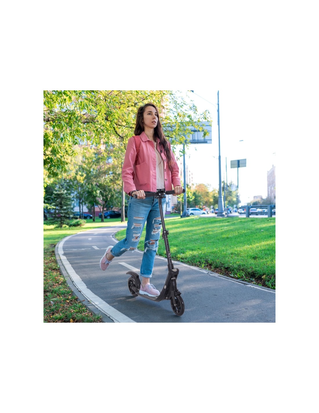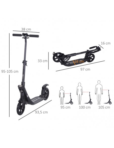 Løbehjul til børn og voksne, udført i et design af sort metal og kunststof med hjul i PU. Løbehjulet måler 93,5 cm i længden og passer til børn og voksne i alderen fra 14 år +.