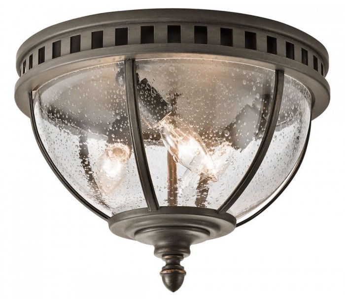 Halleron udendørs loftlampe i et rustikt design fra amerikanske Kichler. Væglampen leveres til europæisk standard til 3 x E14 lyskilder. Lampen måler 30,5 cm i diameter og 22,9 cm i højde/fremspring.