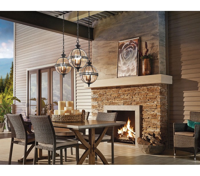 Halleron udendørs hængelanterne i et rustikt design fra amerikanske Kichler. Lampen leveres til europæisk standard til 3 x E14 lyskilder. Lampen måler 30,5 cm i diameter og 56 - 236 cm i højden.