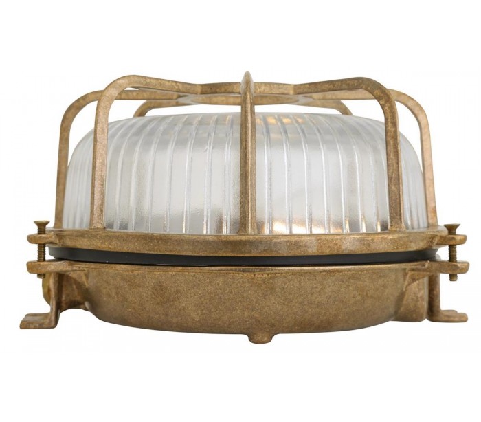 Pasha udendørs loftslampe i et moderne design, fremstillet i naturlig messing. Lampen måler 20 cm i diameter og anvender 1 x E27 lyskilde.