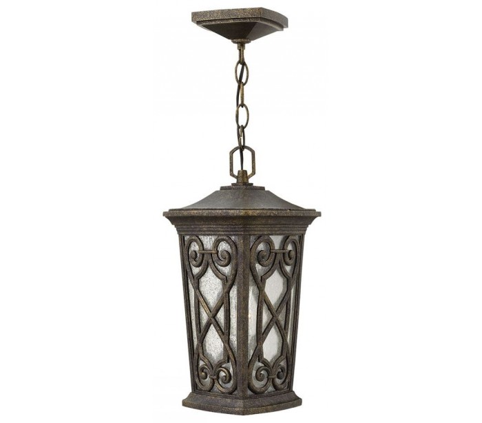 Enzo hængelanterne i et rustikt design fra amerikanske Hinkley. Lampen leveres til europæisk standard til 1 x E27 lyskilde og måler 20,3 cm i diameter.