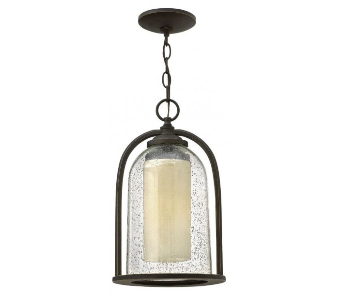 Quincy hængelanterne i et rustikt design fra amerikanske Hinkley. Lampen leveres til europæisk standard til 1 x E27 lyskilde og måler 23,5 cm i diameter.