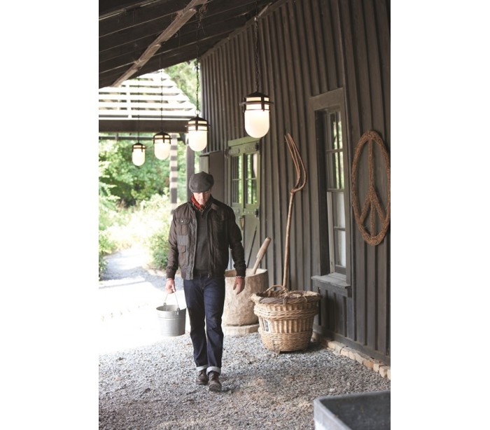 Reef hængelanterne i et industrielt design fra amerikanske Hinkley. Lampen leveres til europæisk standard til 1 x E27 lyskilde og måler 14 cm i diameter.