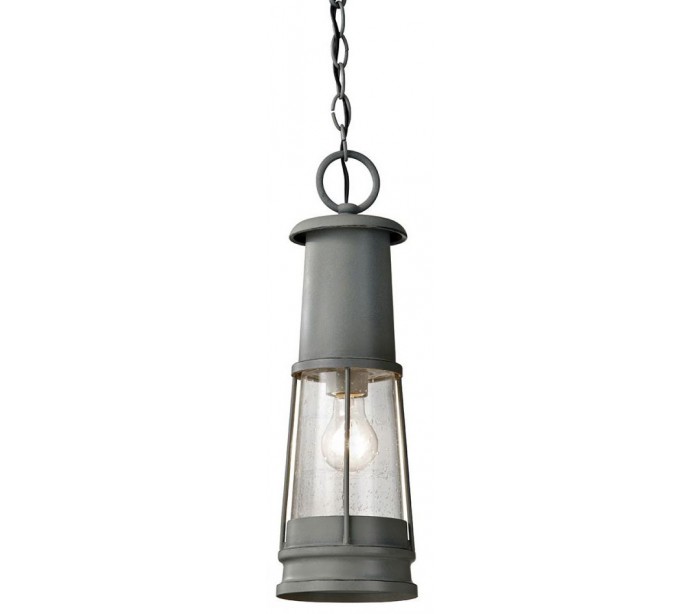 Chelsea hængelanterne i et rustikt design fra amerikanske Feiss. Lampen leveres til europæisk standard til 1 x E27 lyskilde og måler 14,6 cm i diameter.