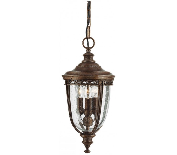 English Bridle hængelanterne i et rustikt design fra amerikanske Feiss. Lampen leveres til europæisk standard til 3 x E14 lyskilder og måler 21,6 cm i diameter.