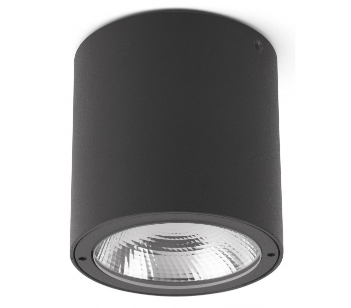 Goz påbygningsspot lampe, udført i et moderne design og fremstillet i mørkegrå lakeret aluminium og skærm i klar glas. Lampen måler 9 cm i diameter og 9,5 cm i højden. Lampen anvender 1 x CREE LED indbygget lyskilde på max. 8W (Inkl.).