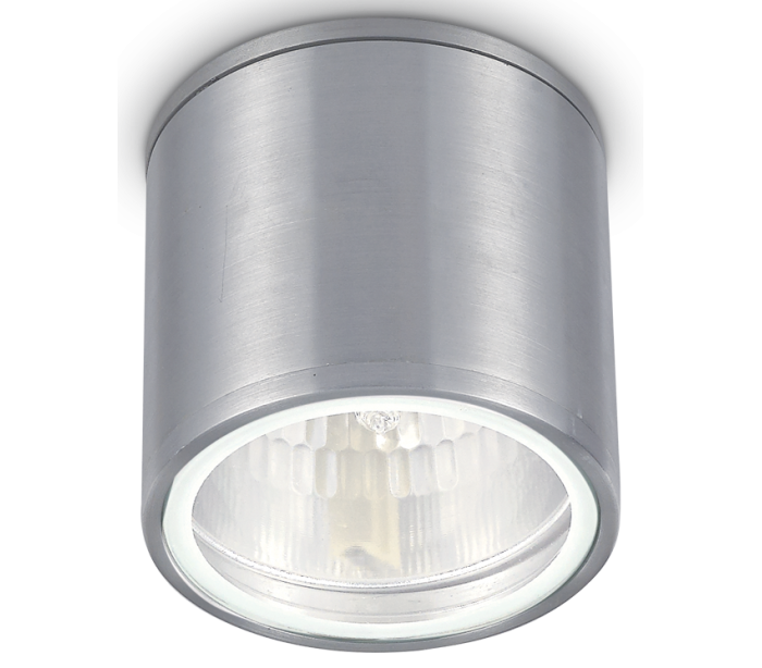 GUN udendørs påbygningsspot i et moderne design fremstillet i aluminiumsfarvet metal. Spotten måler 11 cm i diameter og 11,5 cm i højden og anvender 1 x GU10 lyskilde (Ekskl.).