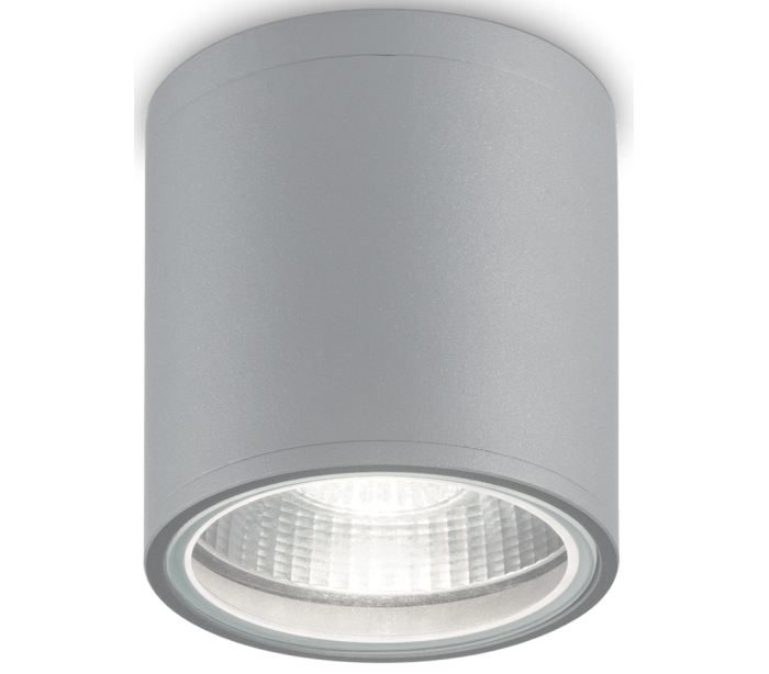 GUN udendørs påbygningsspot i et moderne design fremstillet i grålakeret metal. Spotten måler 11 cm i diameter og 11,5 cm i højden og anvender 1 x GU10 lyskilde (Ekskl.).