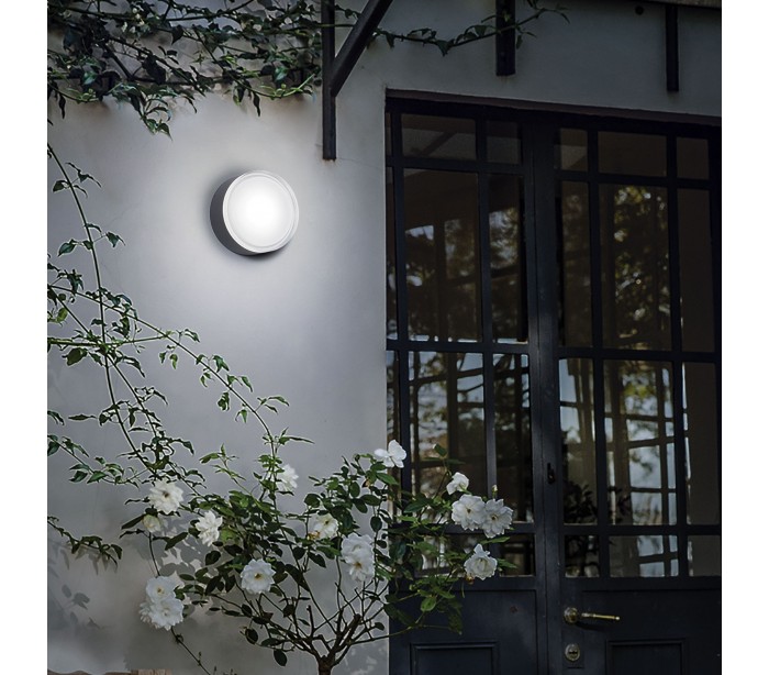 URANO udendørs påbygningsspot i et moderne design fremstillet i antracit lakeret aluminium og akryl. Spotten måler 16 cm i diameter og 7,5 cm i højden og anvender 1 x GX53 lyskilde (Ekskl.).