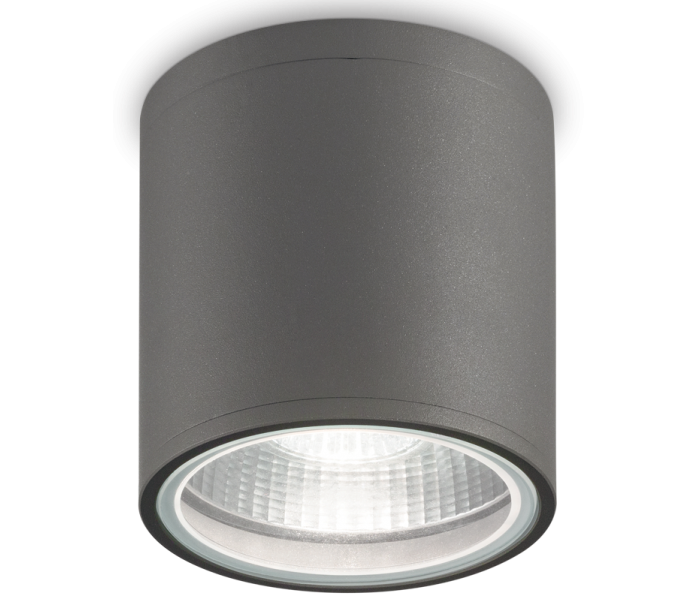 GUN udendørs påbygningsspot i et moderne design fremstillet i antracit farvet pulverlakeret metal. Spotten måler 11 cm i diameter og 11,5 cm i højden og anvender 1 x GU10 lyskilde (Ekskl.).